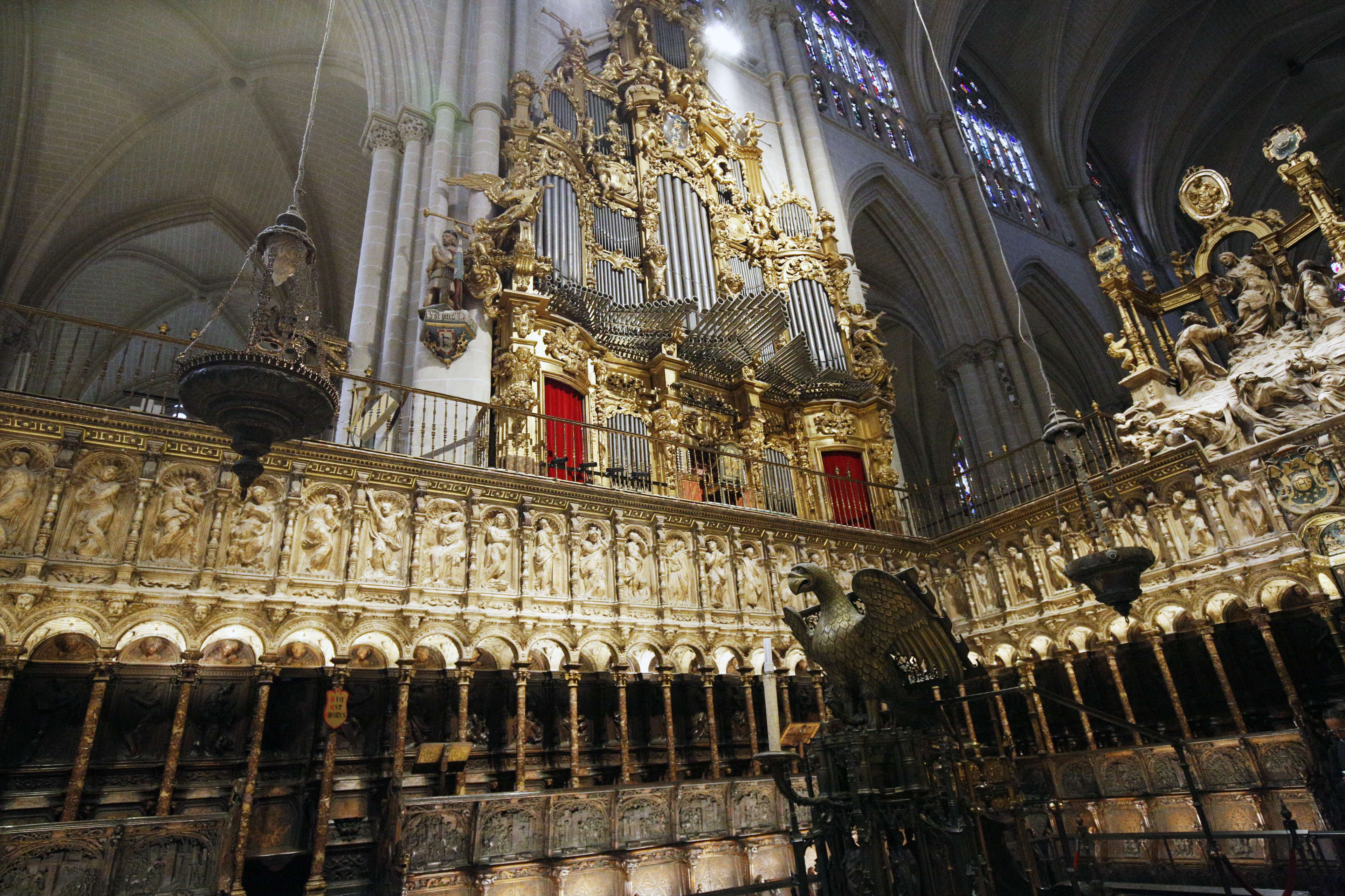 中央の講義台のところには、青銅製の鷲の彫像がある。ビセンテ・サリナス(16世紀の銀細工師)によって1664年に鋳造された。これは十二使徒の聖ヨハネの象徴であり、聖書の教えが空高くまで広まることを示すと言われているが・・・。(ネットにある様々な記述より)