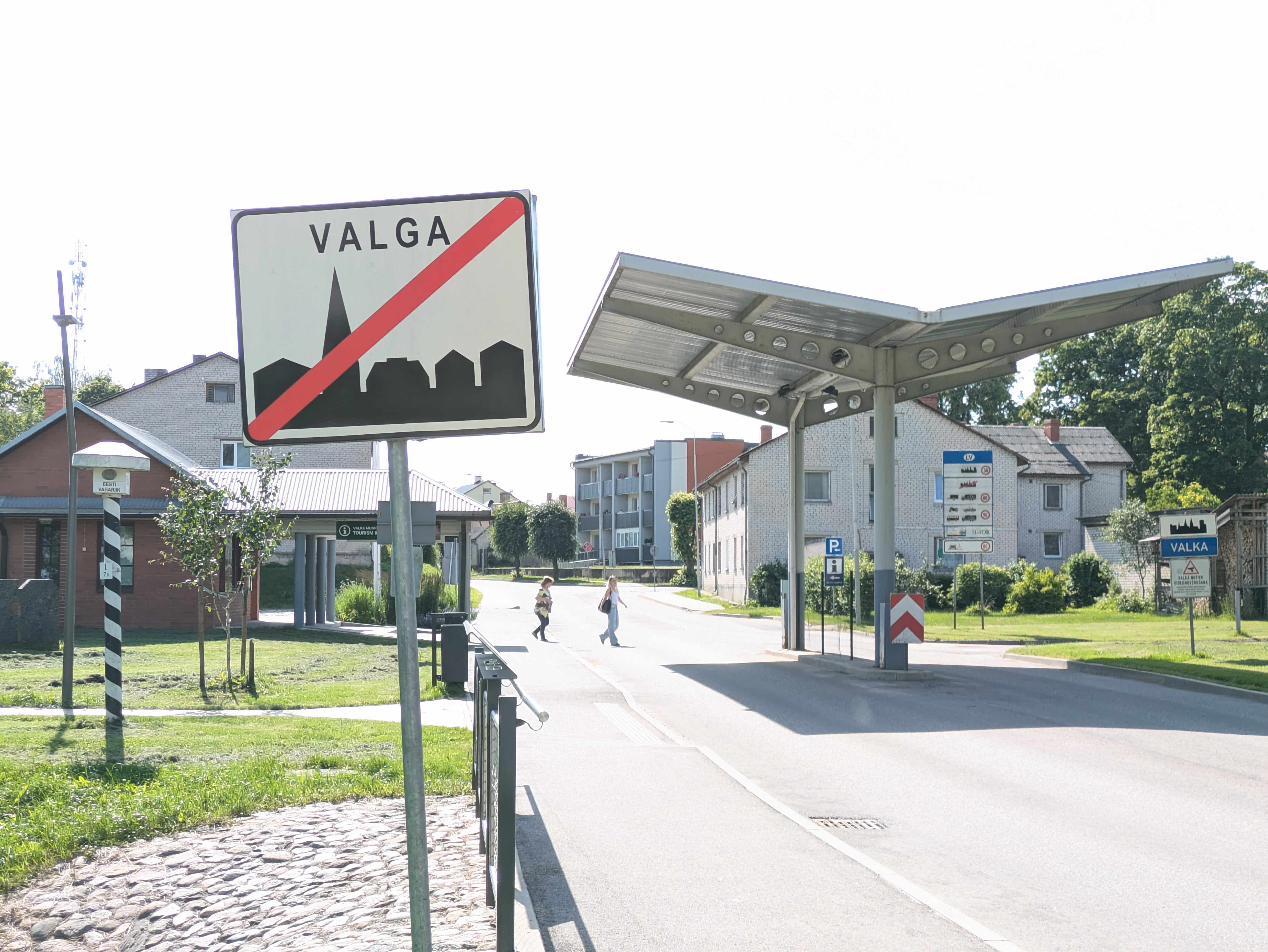 これらはすべてエストニア側のヴァルガからのもの。ここでは小川が国境になっています。左の写真から右の写真へと続くものです。ヴァルガに赤い斜め線があるのは、「ここはもうヴァルガではない」という意味。道路に立つ建物はかつてのラトヴィアの検問所。