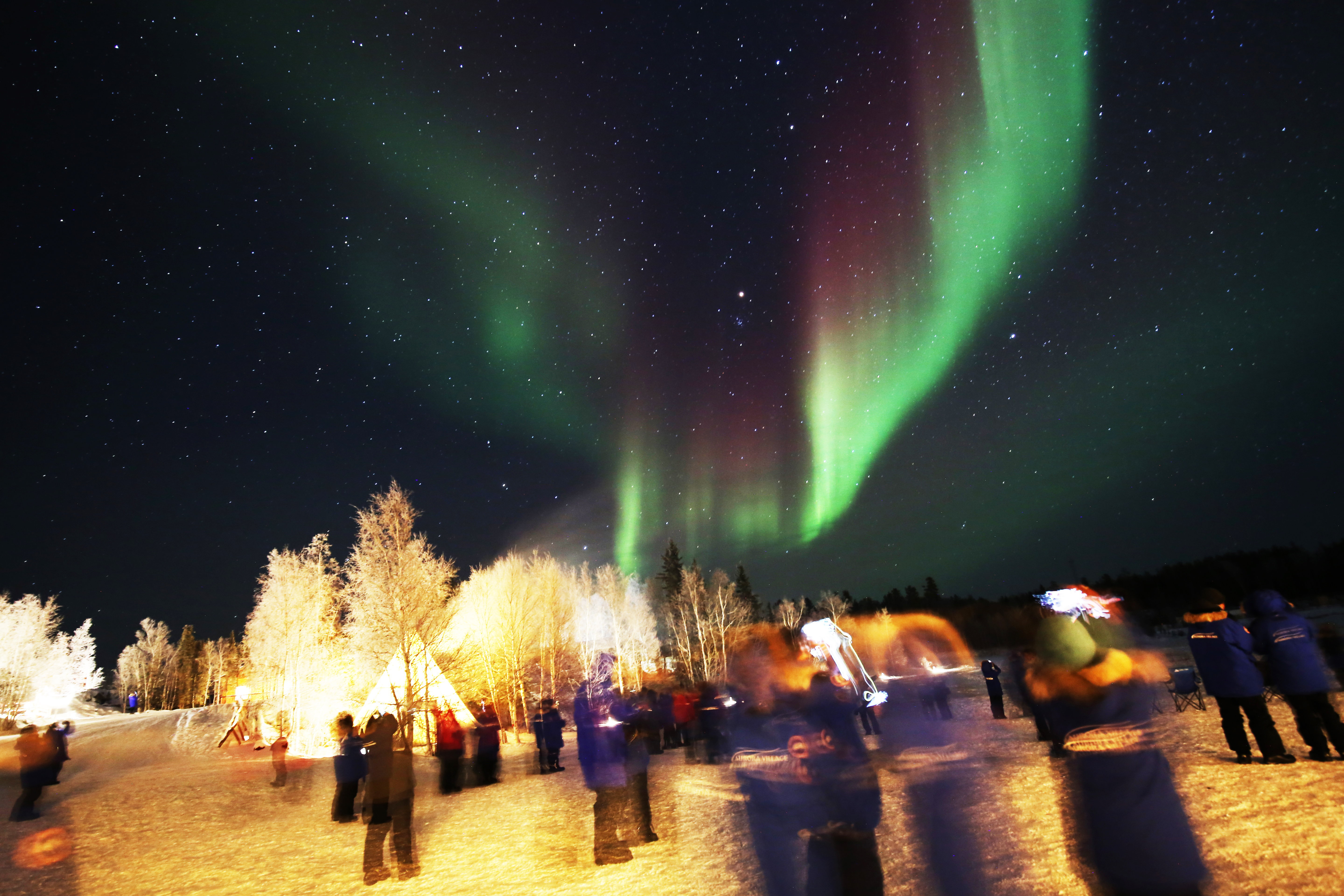 1日目から3日目は、次の日の0:50まで観測し、ホテルに1:30ころ帰った。それから入浴し、夜食として買い置きしていたパンを食べ、オーロラ撮影の「戦果」をコンパクトフラッシュからタブレットにコピーして確認し、「これだ」と自己満足できるものをLINEで繋がっている人々に送り、朝6時前後に寝て午後3時ころ起きるという生活になった。2日目から4日目は18:00ころホテル内のレストランで「朝食」を摂り、また夜食のため近くのスーパーにパンなどの買い出しに行っておき、20:50にホテルに迎えに来るオーロラヴィレッジまでの送迎バスに乗った。2日目も天気は快晴で、昨日のように美しい星空が拝めた。今夜は昨日ホテルに置いてきたリモートや目出し帽などを携帯して来たので慣れもあって少し楽だった。白い雲や霞にしか見えなくとも、それがオーロラだと分って来たので、写真を撮りまくった。しかし、相変わらずピンボケが続いた。疲れたので休憩テントで他のツアーの若い女性たちとおしゃべりしていたら、「オーロラまた出てますよ!」と現地の若い女性ガイドが言うので、撮影を再開した。結果として、このガイドさんに感謝。このとき撮ったオーロラには、緑色だけでなく、念願だった「赤い(ピンク?)オーロラ」までばっちり写っていた。ネットのある解説によると、「オーロラの色は、大気中の酸素や窒素分子が太陽エネルギーを受けて発光する際の波長によって決まります。緑色のオーロラは酸素分子が高度約100~300kmで放つ光で、赤色のオーロラは同じく酸素分子が高度約300km以上で放つ光です。」とのこと。それで地上からは上に赤く下に緑のオーロラが撮影でき、また北海道などのより低緯度の場所では遠くの高いところの赤いオーロラだけを撮影できるわけである。