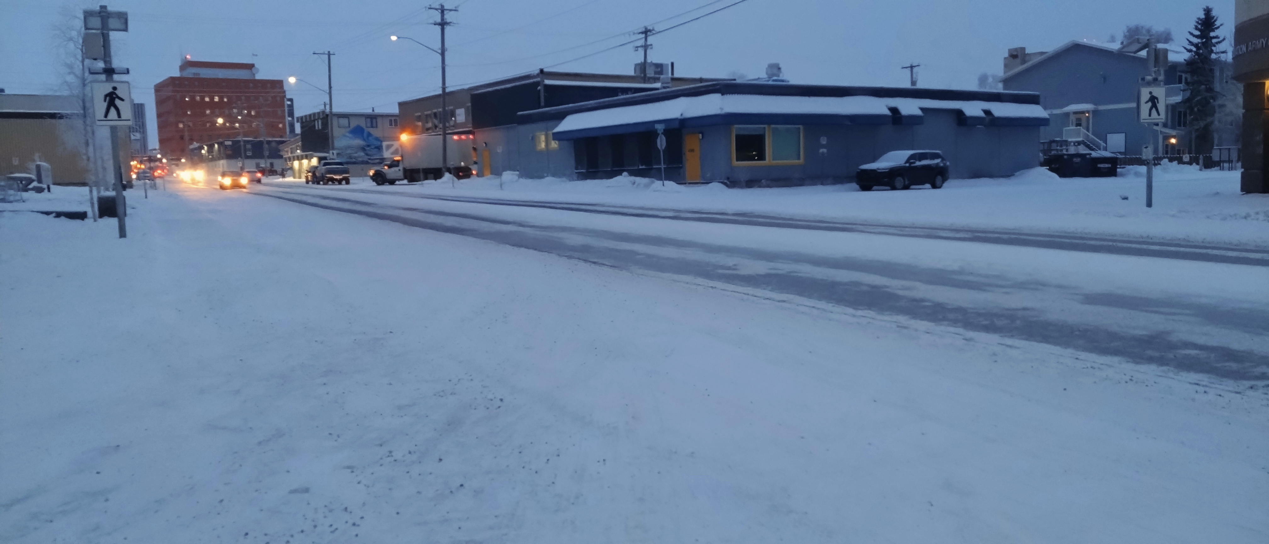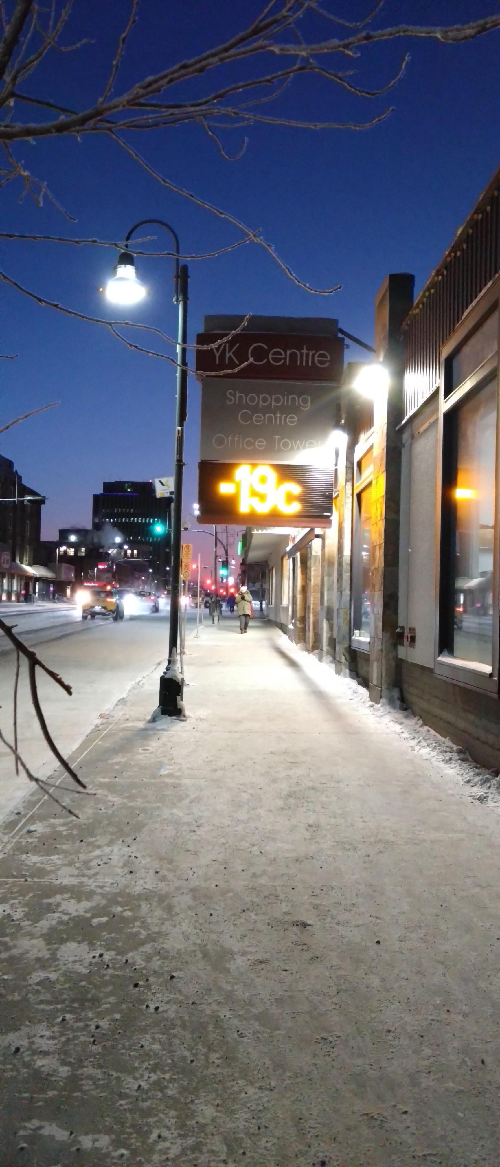 イエローナイフのダウンタウンの午後4:30近くの様子。ここでマイナス19℃