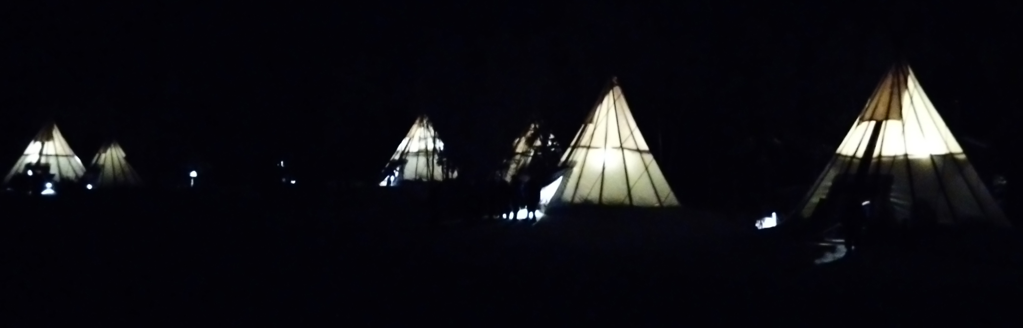 1日目は、様々な旅行会社の集めた日本人ツアー客21名が1台のバスに乗せられて、イエローナイフのダウンタウンから約20kmの「オーロラヴィレッジ」という、薪暖房、ホットドリンク付きテント休憩所(TeePee)のある観光用のオーロラ見学地に行きました。以後、毎日21:30~0:50まで、この中の好きなところで観測したり撮影したりしました。ただ、毎晩マイナス20℃~マイナス30℃となる厳寒下では、レンタルの防寒具を付けていても寒さが襲ってきて、目出し帽を付けてやっと頬の痛みが減り、リモート操作がうまくいかないときの直指でのシャッター押しは指先がとても冷たくなるなど、これまた人生初の寒さ痛さの体験でした。