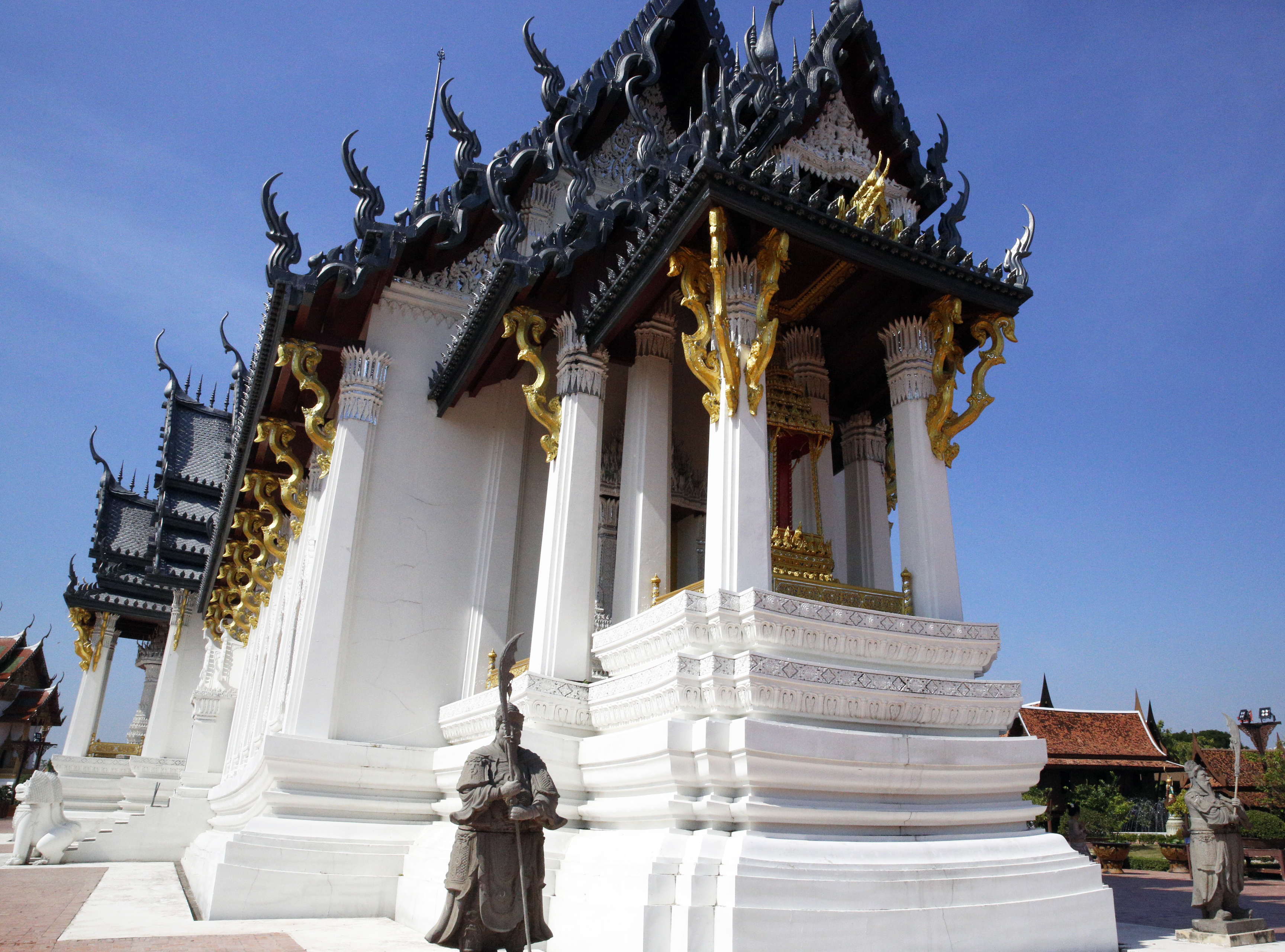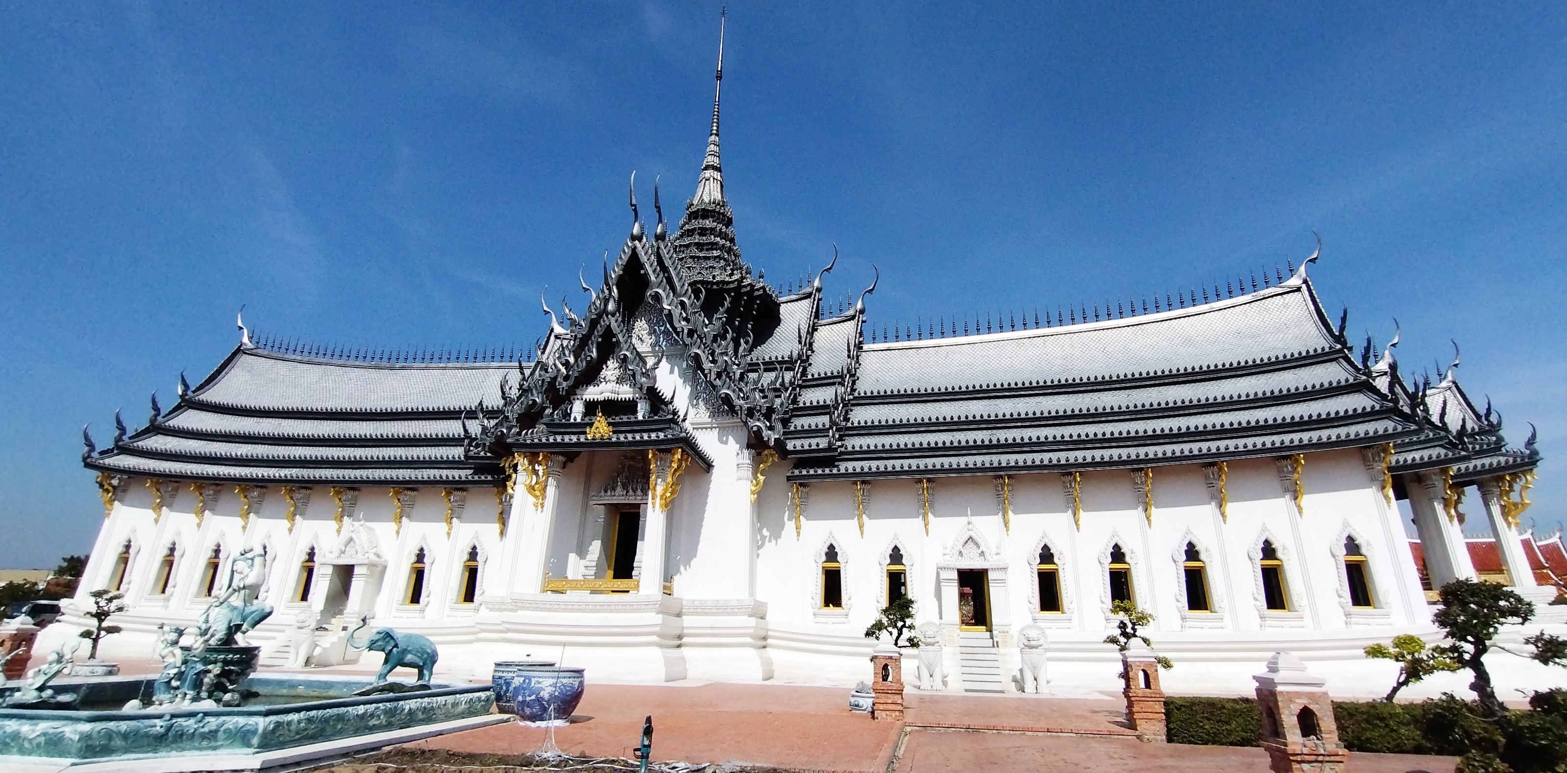 ②十字形の建物はアユタヤのオリジナルで、その建物それぞれの長さの長短にはかなりの差があったが、この形もチャクリー朝に引き継がれ、十字に交わる四つの建物のそれぞれの長さがあまり変わらなくなった、ということ