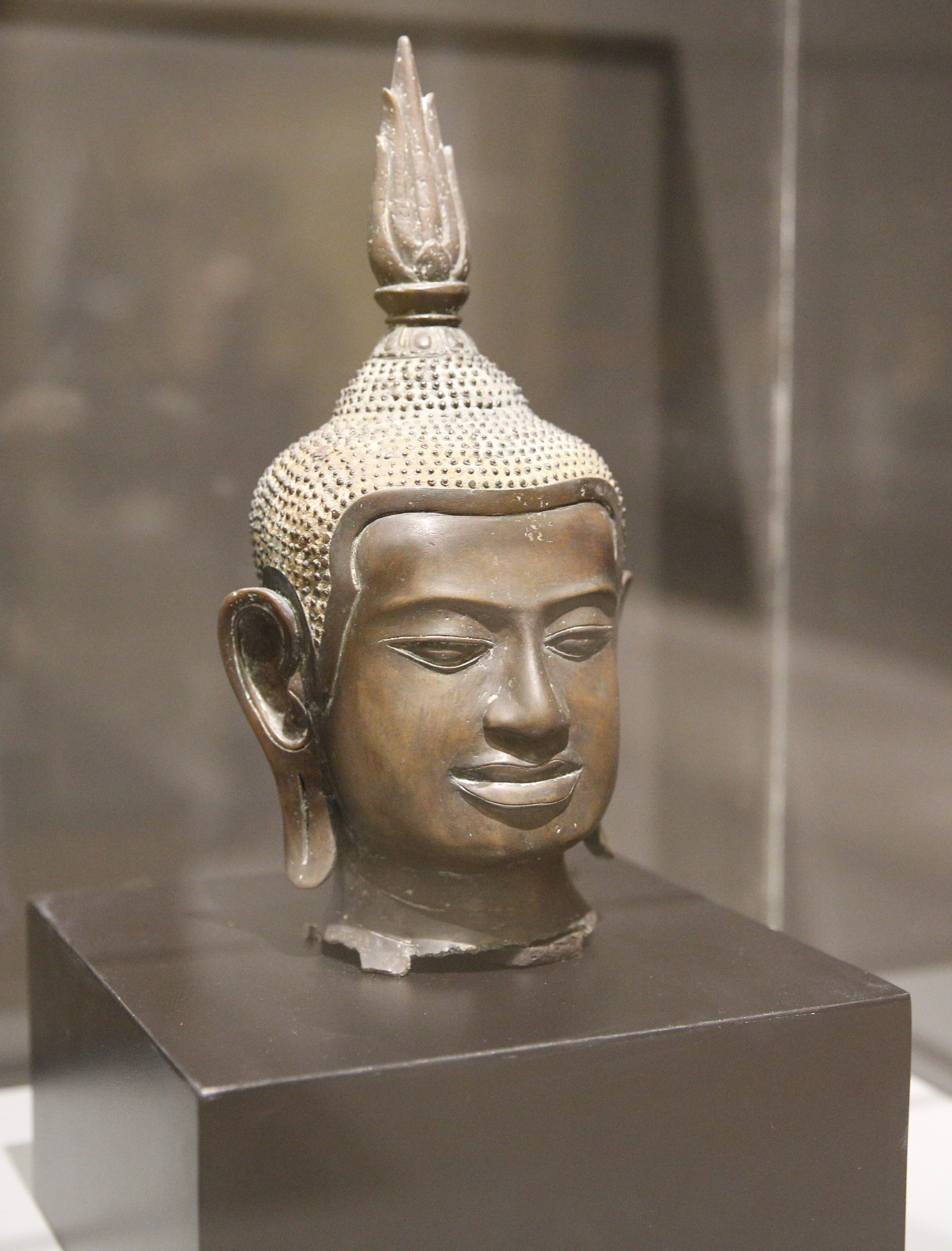 15-16世紀、アユタヤ中期のもの。すでに仏頭の形、顔の表情、乳首の強調?などスコータイのものとは違っている