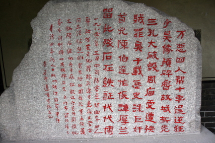 「文化大革命」とは、1966年から76年にかけて、毛沢東がライバルの劉少奇やケ小平らの勢力を陥れるため、彼らの勢力や自由主義的知識人らを「資本主義の手先」とし、多くの青少年を動員して暴力的攻撃をかけた事件であった。儒教なども古い反革命的なものとし、文化財にも攻撃をかけた。毛沢東の妻だった江青らも「四人組」としてこの中心にいたとされる。私が回った山東省の遺跡のいくつかにも当時の青少年からなる「紅衛兵」が攻撃をかけた。私に付いた現地ガイドは毛沢東を尊敬していると語ったが、文化財破壊のことは率直に説明してくれた。