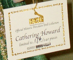 よく見ると、Catherine Howard というお名前が付いています。調べたら、国王ヘンリー8世(在位1509-47。王妃がいたのに、離婚して侍女アン=ブーリンと結婚しようとしてローマ教皇の承認が得られなかったため、イギリス国教会をローマから独立させ立ち上げた)の5人目の妻で、49歳の王より30歳も若かった女性です。何人かの男性と不倫したことがわかって、ロンドン塔で処刑されました。