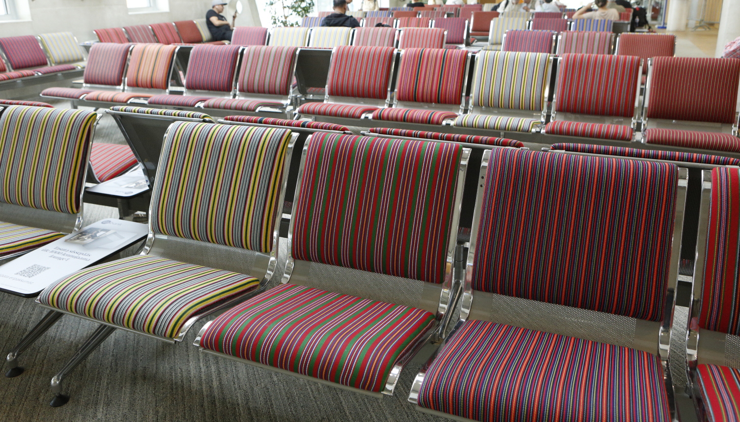 タリン空港のゲート前の椅子。おしゃれ。日本にも伝統的な文様がたくさんあるから真似してみたらどうかな?