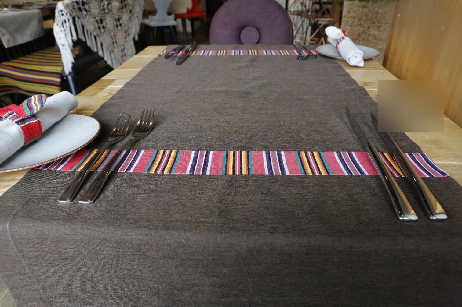 タリン市内のレストランのテーブルクロスと土産物店で売っていた小物入れ