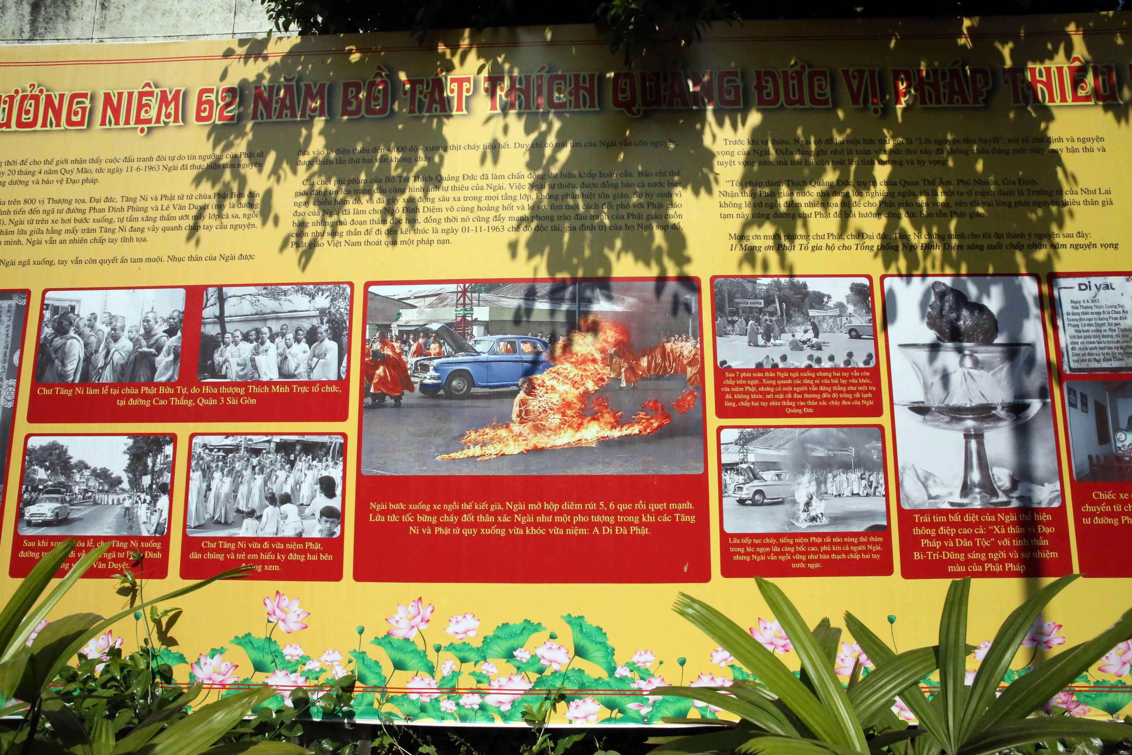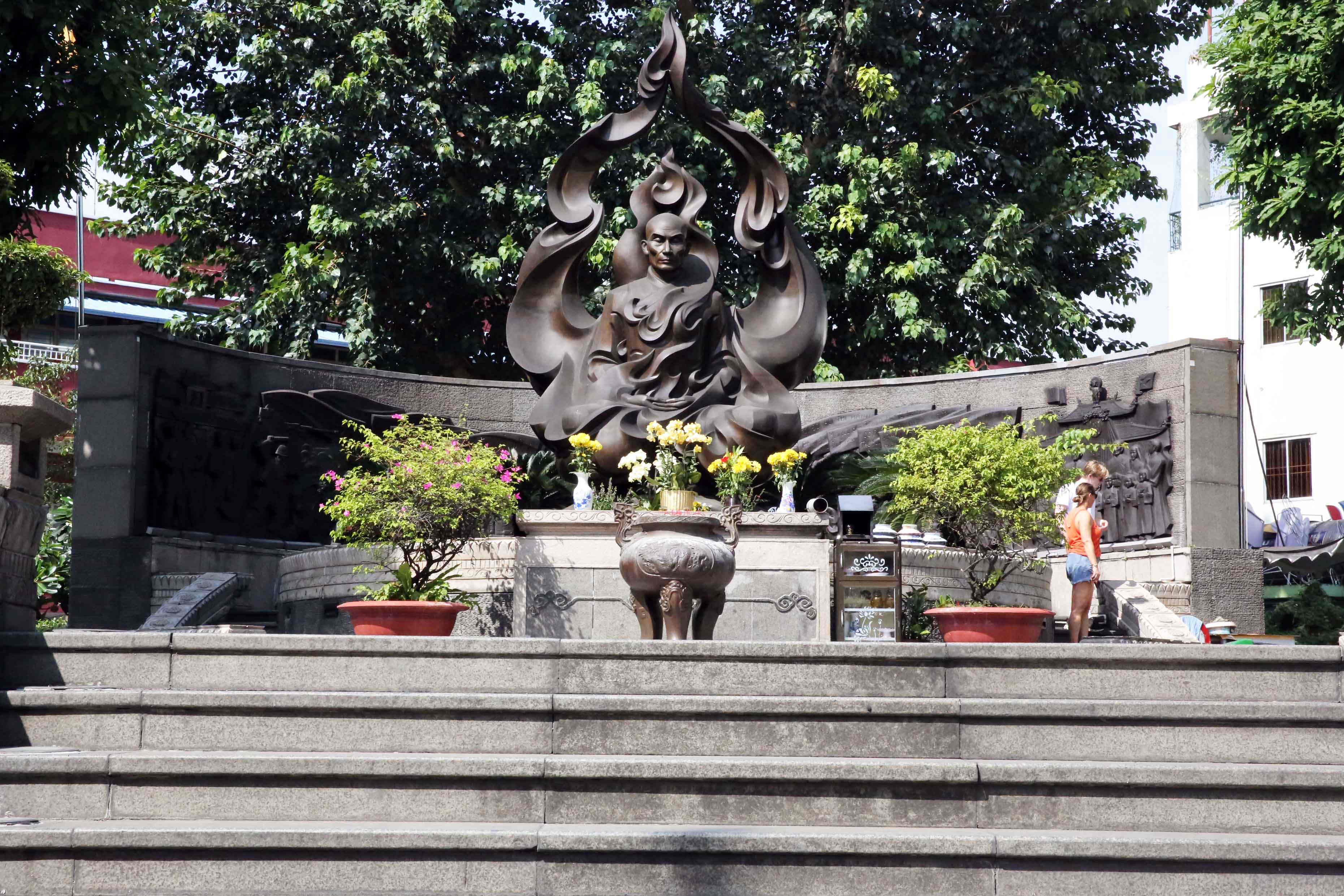 仏旗(現在のもの)と、ドック師の記念碑がある場所。このすぐ脇の交差点で焼身自殺した。