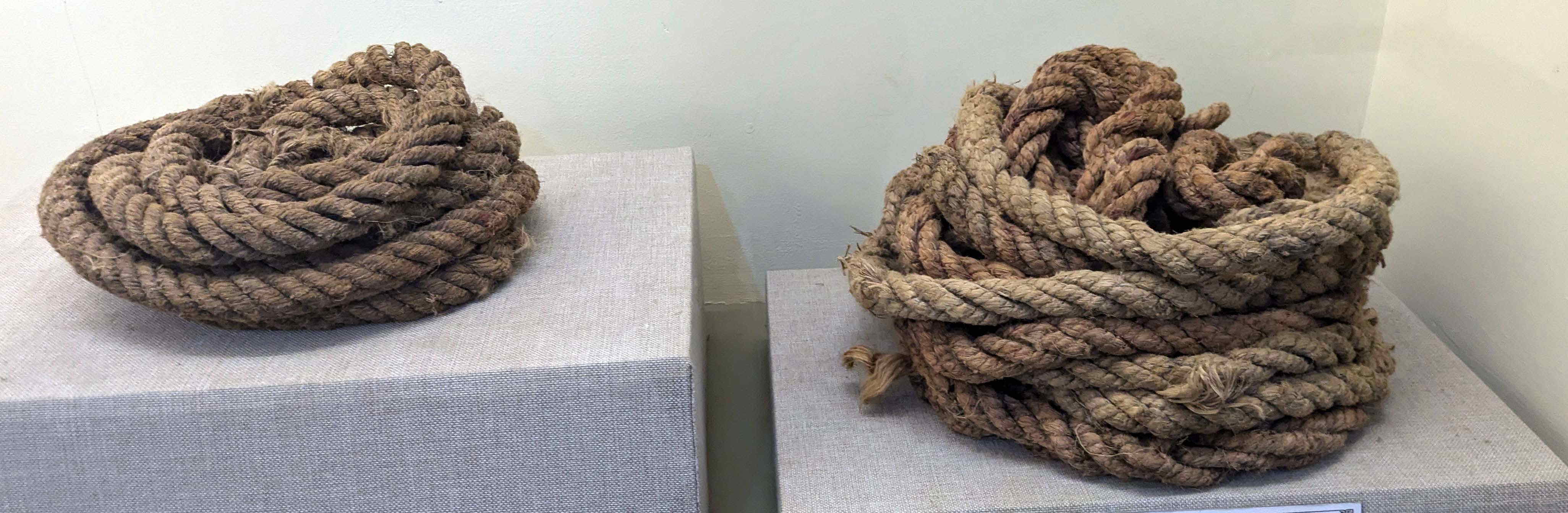 道路開削に使われたスコップや火器を引き上げたローブまで展示されていた(同博物館)