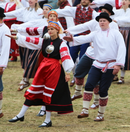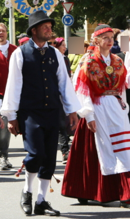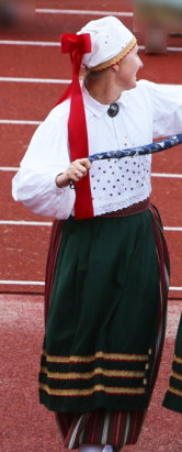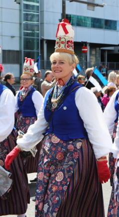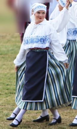 西エストニアについては、祭典が7月だったこともあり、Pärnu県Saardeを除いて「羊毛製の上着」は確認できなかった。だが、ここのは灰色で、茶色や黒ではない。他地域と一線を画すのは、様々な色、模様のショールまたは様々な色のヴェストを着用していることであろう。ただし、南エストニアの一部地域でもショールやヴェストを着るので独自の特徴とは言い切れず、「ショールやヴェストを着るのが一般的」と言った方がいい。