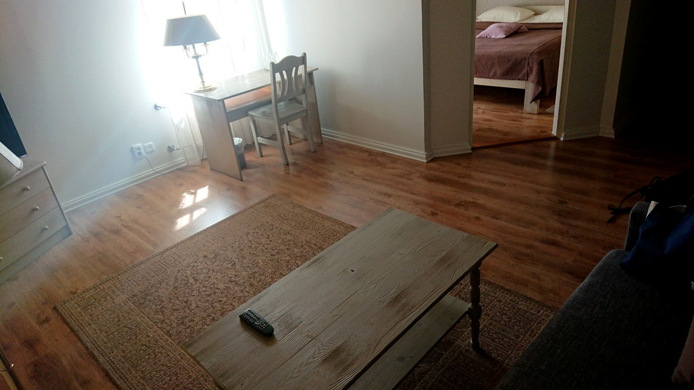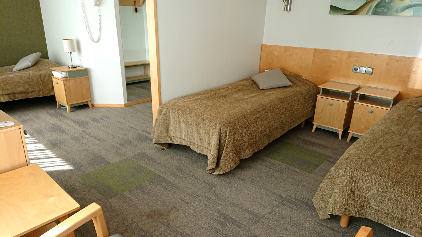 左がラクヴェレのホテルの部屋(写真には写っていないが、寝室の隣には個室サウナがあった)。右がタルトのホテルの部屋。1人旅の私にはともにすこぶる快適だった。