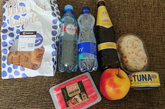 物価の驚異的に高いノルウェーの悪夢のような状況から、エストニアに来て、、エストニア産の500mℓペットボトルミネラルウォーターの値段を見て、ホッとした。税込み(消費税は20%)でも0.45ユーロ、当時のレートで換算して約54円、日本のコンビニの50%、ノルウェーの1/7の値段である。 レジでの支払いが簡単なのでよくスーパーマーケットを利用した。特にタルトではバスステーションに近い、kaubamajaというスーパーを毎日利用したが、食料品は生鮮食品から調理品、アルコール類と実に豊富な品揃えであった。寿司のパック(マヨネーズ入り)からチョーヤの梅酒まで売っていた。また、そのビルには様々な店が入っていたが、いろいろ覗いてみると、男の私には本当にはよくからないが、化粧品の店などは日本のものと品揃え感、雰囲気が変わってなかった。