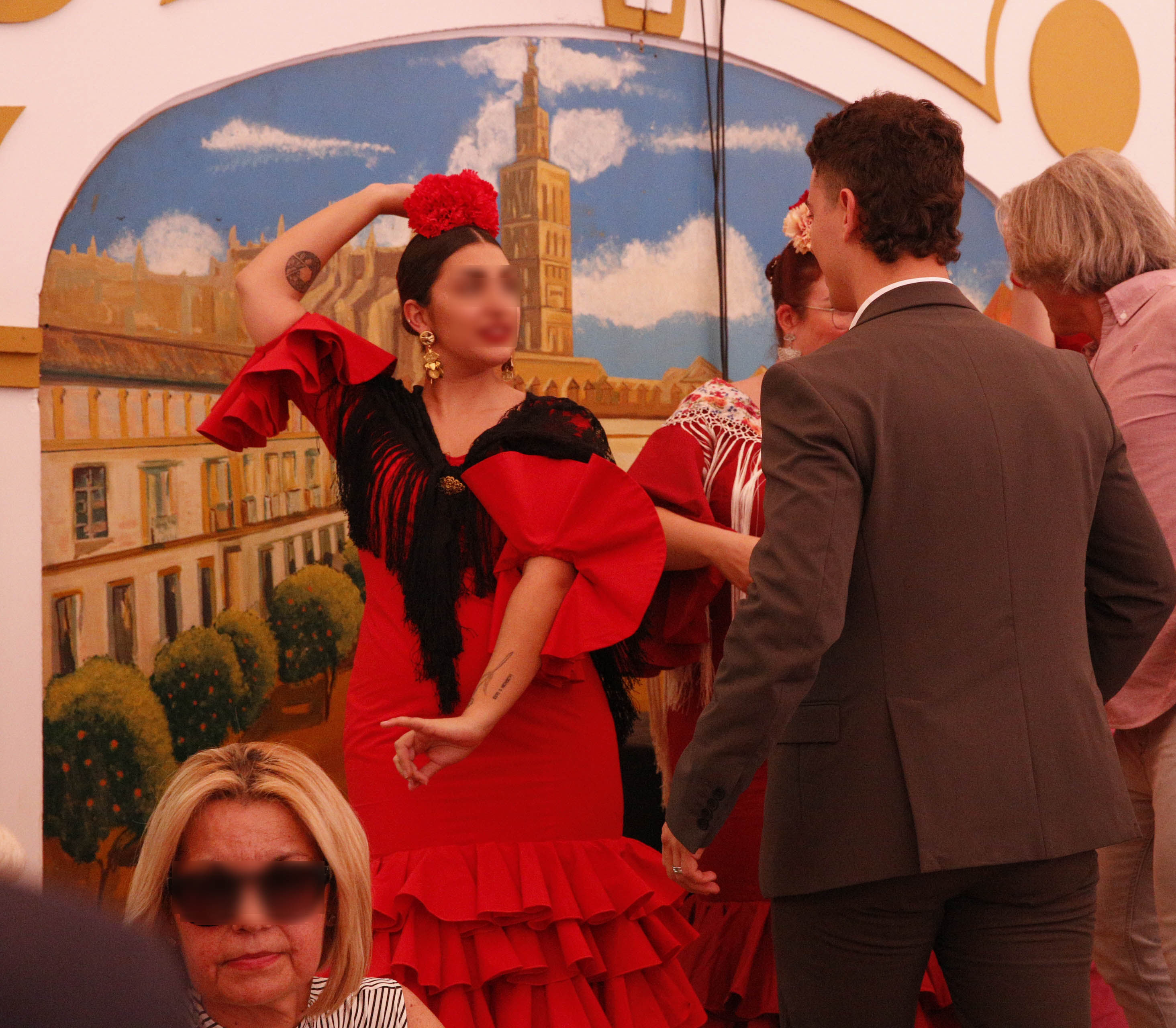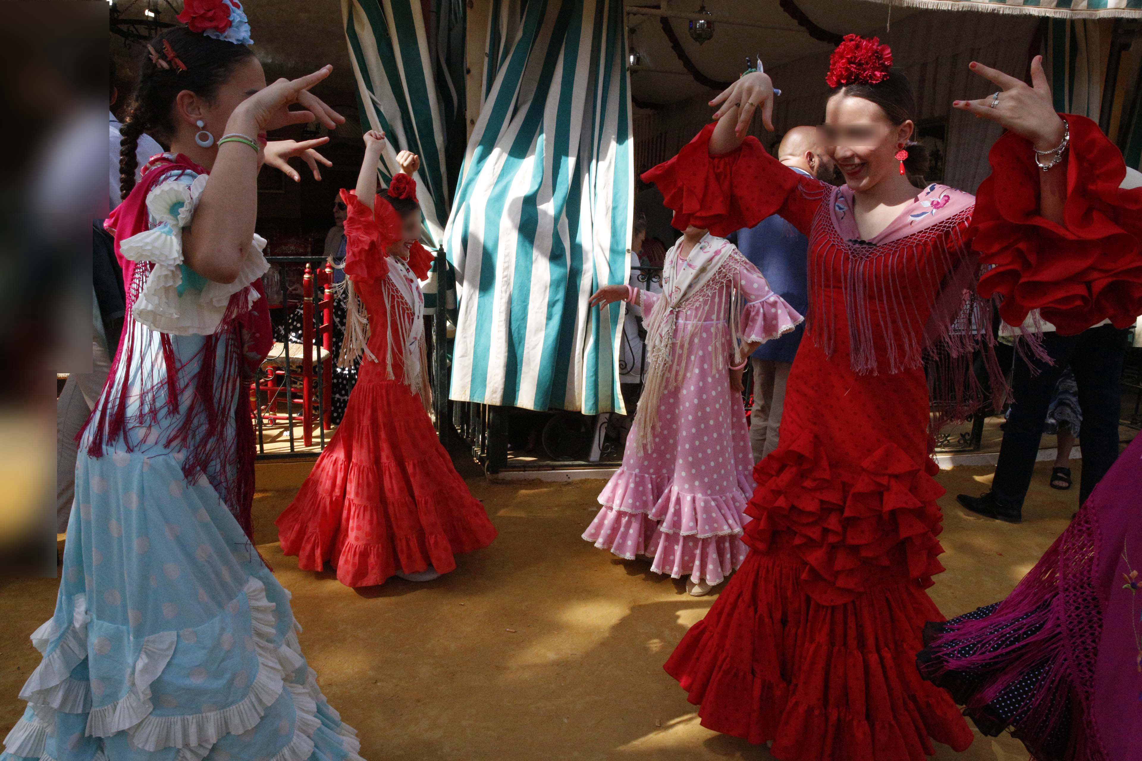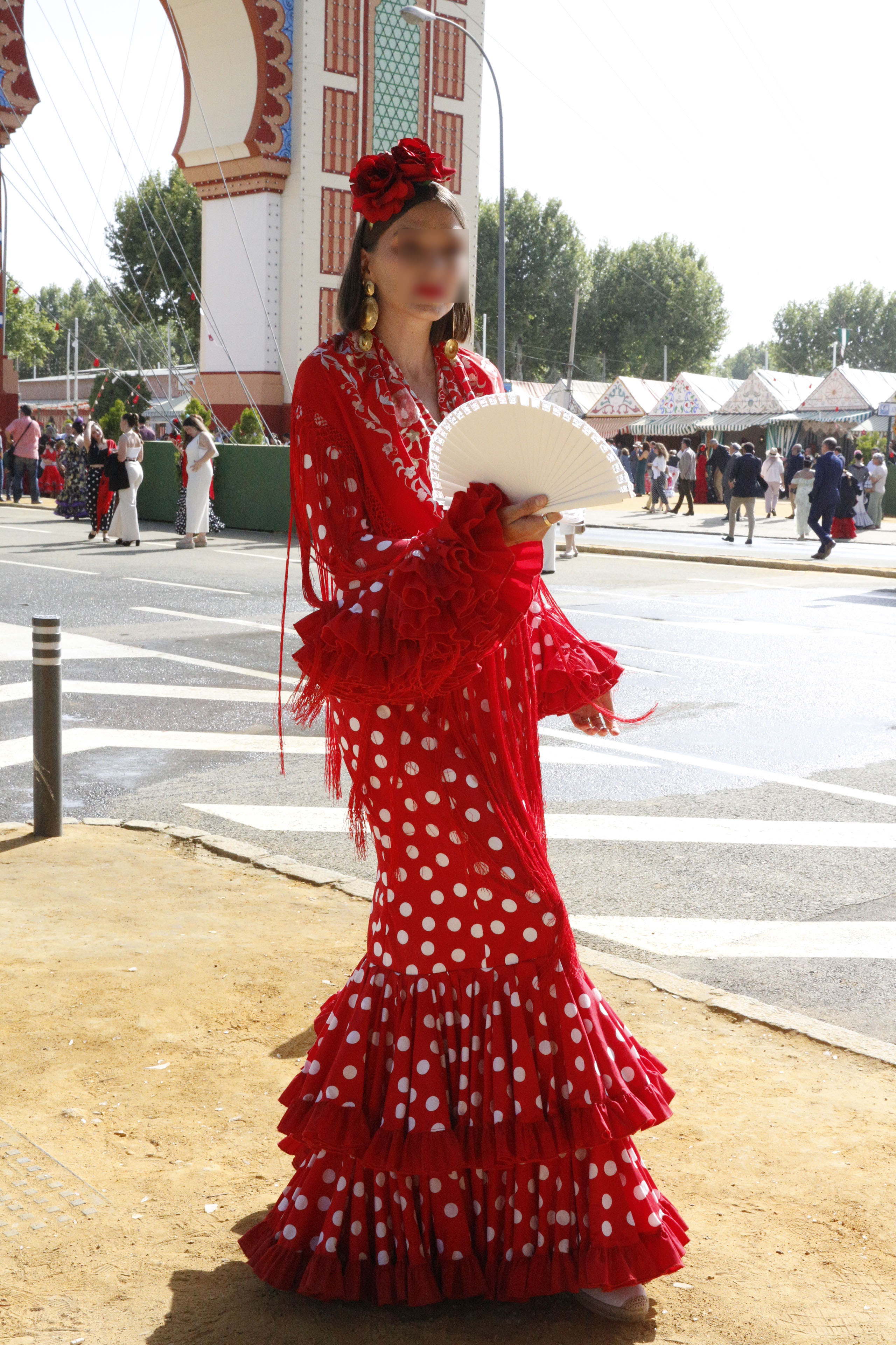 この後は、カセタの外に出て、片っ端から女性たちに「May I take your picture?」と声をかけて写真を撮りまくった。断られたケースは全くなかった。素人表現でこのアンダルシア地方の民族衣装の特徴をまとめると、「頭に薔薇などの造花を付け、袖やスカートの裾に多重のフリルを付けたワンピースを着て、フリンジ付きショールを肩から掛けるもの」、と言えるだろう。