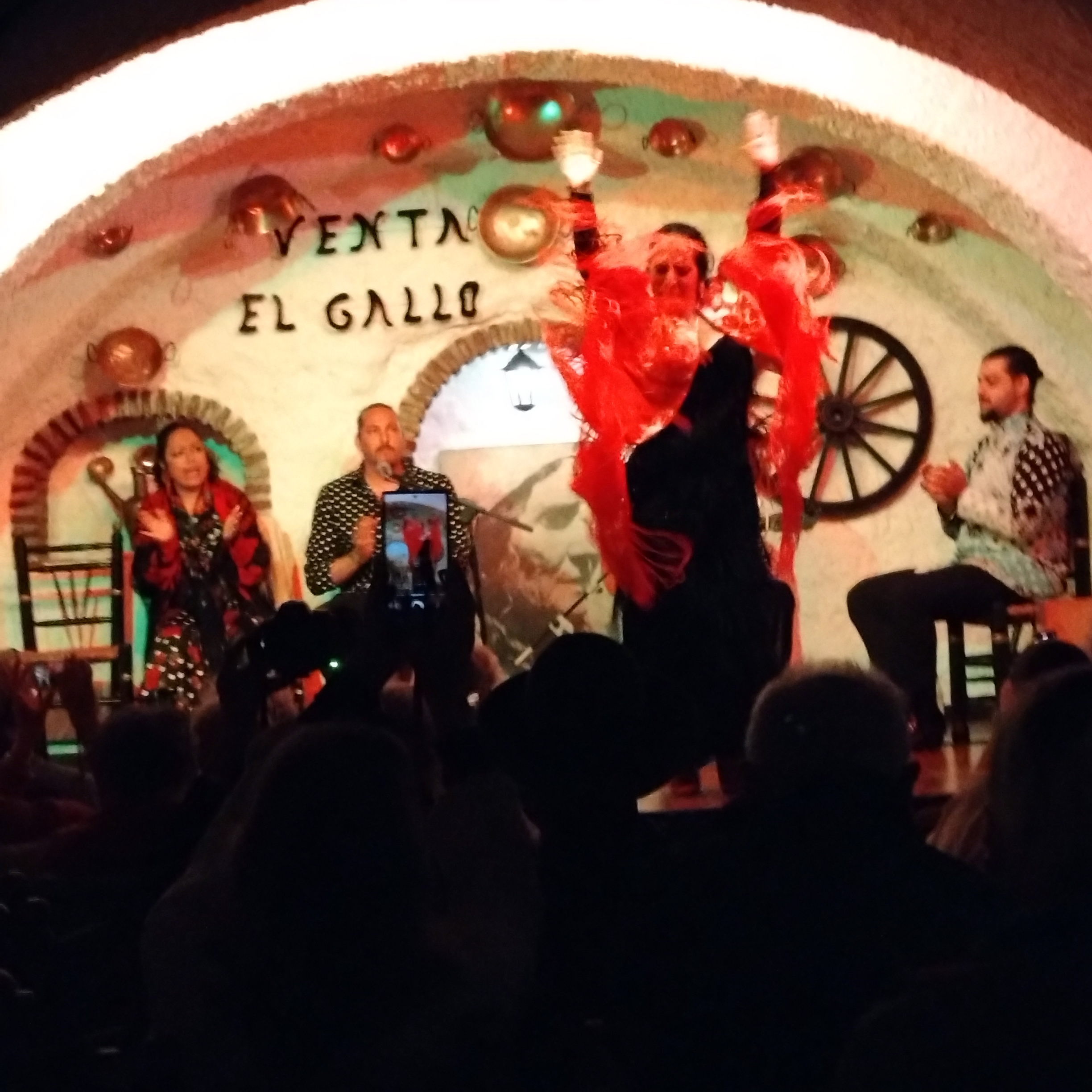 最初で最後になるかもしれないスペイン旅行。となれば、やはり本場のフラメンコを見たい、となった。スペイン旅行の日程の中で夜に余裕があったのがグラナダに行ったときだった。いくつかの候補から選んだのは、万一途中でトイレに行きたくなった時、他の観客に迷惑のかからないような構造になっているところ。スペイン料理レストランも兼ねた、Venta el Galloというところである。食事のテーブル席から、洞窟を模した舞台が見られるようになっていた。ここは、グラナダ現地で、日本人旅行社のため様々便宜を図ってくれた「日本語情報センター」から紹介されたところであった。食事なしで舞台の近くの鑑賞専門の席でフラメンコ鑑賞だけもできる。アルハンブラ宮殿からダロ川を超えた向こうの丘に広がった白い家の密集した場所である、世界遺産に登録されたアルバイシン地区(地名の語源は不明のようである)を登って行ったところにあった。白い壁は、暑い日差しを少しでも避けるためだという。グラナダ中心部のイサベル女王像の近くのホテル前に、10名以上の客を乗せたバスが迎えに来て連れて行かれたので、どこをどう通って行ったのか全く分らなかった(日本人は私だけ)。アルバイシンはキリスト教徒に対抗したムスリムの居住地で、最後の拠点だったため、ものすごい迷路となっている。バスの運転手は職人技で狭く曲がりくねった坂道を上り下りした。私がグラナダで泊ったホテルはレセプションがたいへん親切だったのだが、何と「門限23:00」があったので、その旨を翻訳機を使ってスペイン語で伝えると、帰りはちゃんと間に合うようにあっという間に街灯の薄明りしかない迷路の坂を下ってくれた。フラメンコと同様に、このドライバーの腕に痺れた夜だった。