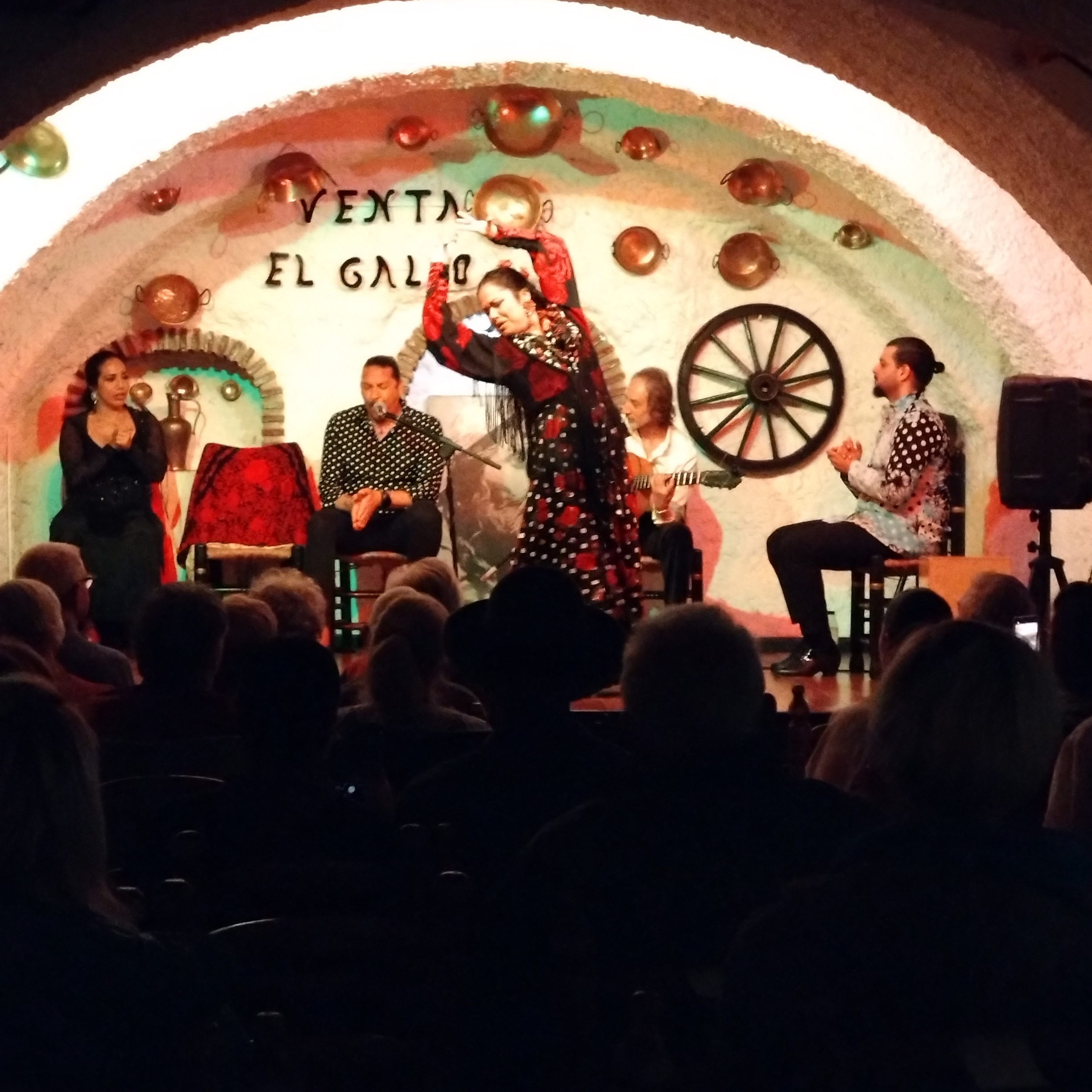 フラメンコについては、全くの素人だが、鑑賞したものを説明すると、女性2人と男性1人が順に1人ずつ踊り、残りの男性の1人がギター演奏、残りの人は手拍子と掛け声。という分担であった。女性は足を踏みならしただけではなく、スカートの裾も激しくたくし上げたりしてまで踊った。激しい情熱が感じられた。ショー全体の時間はほぼ1時間だった。