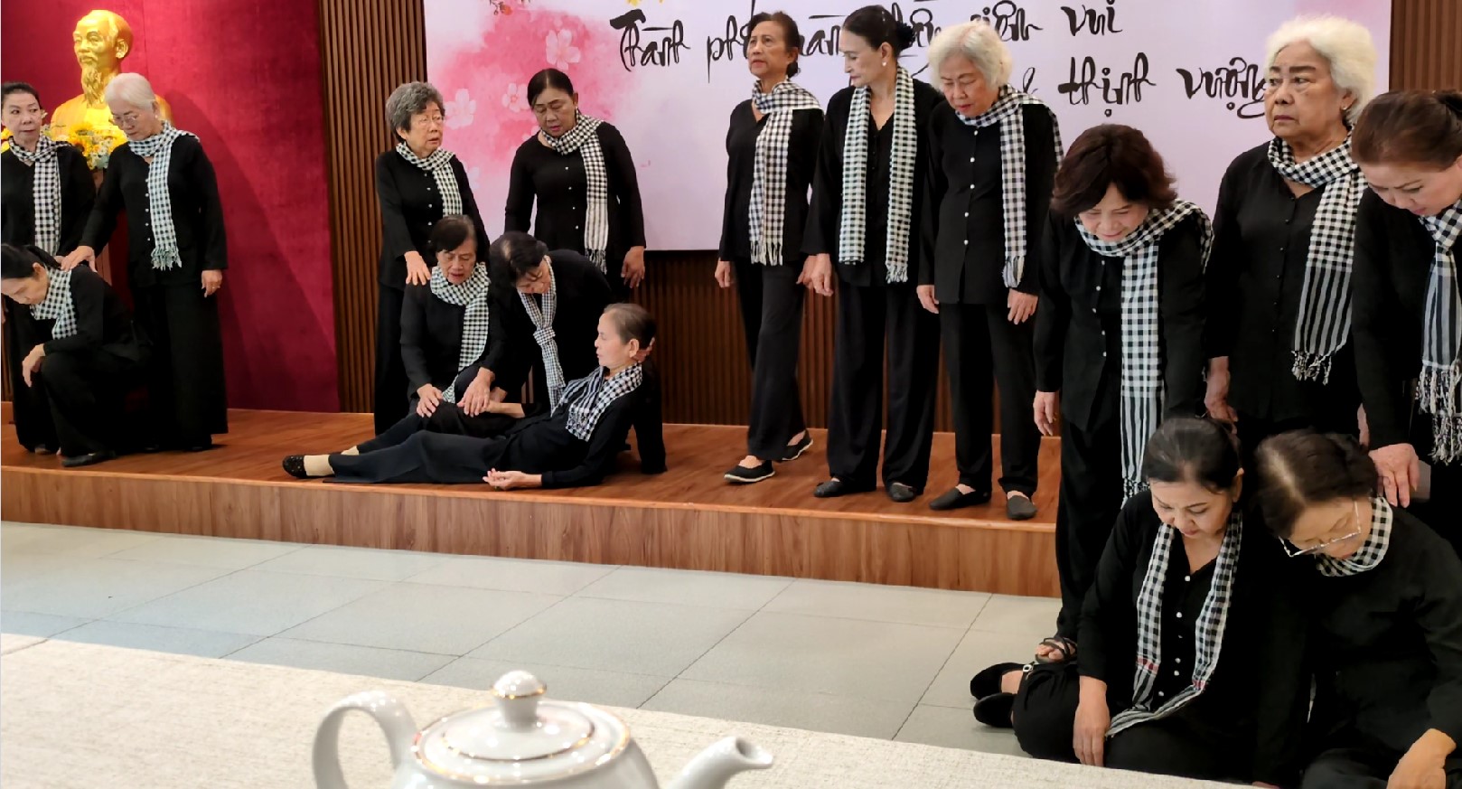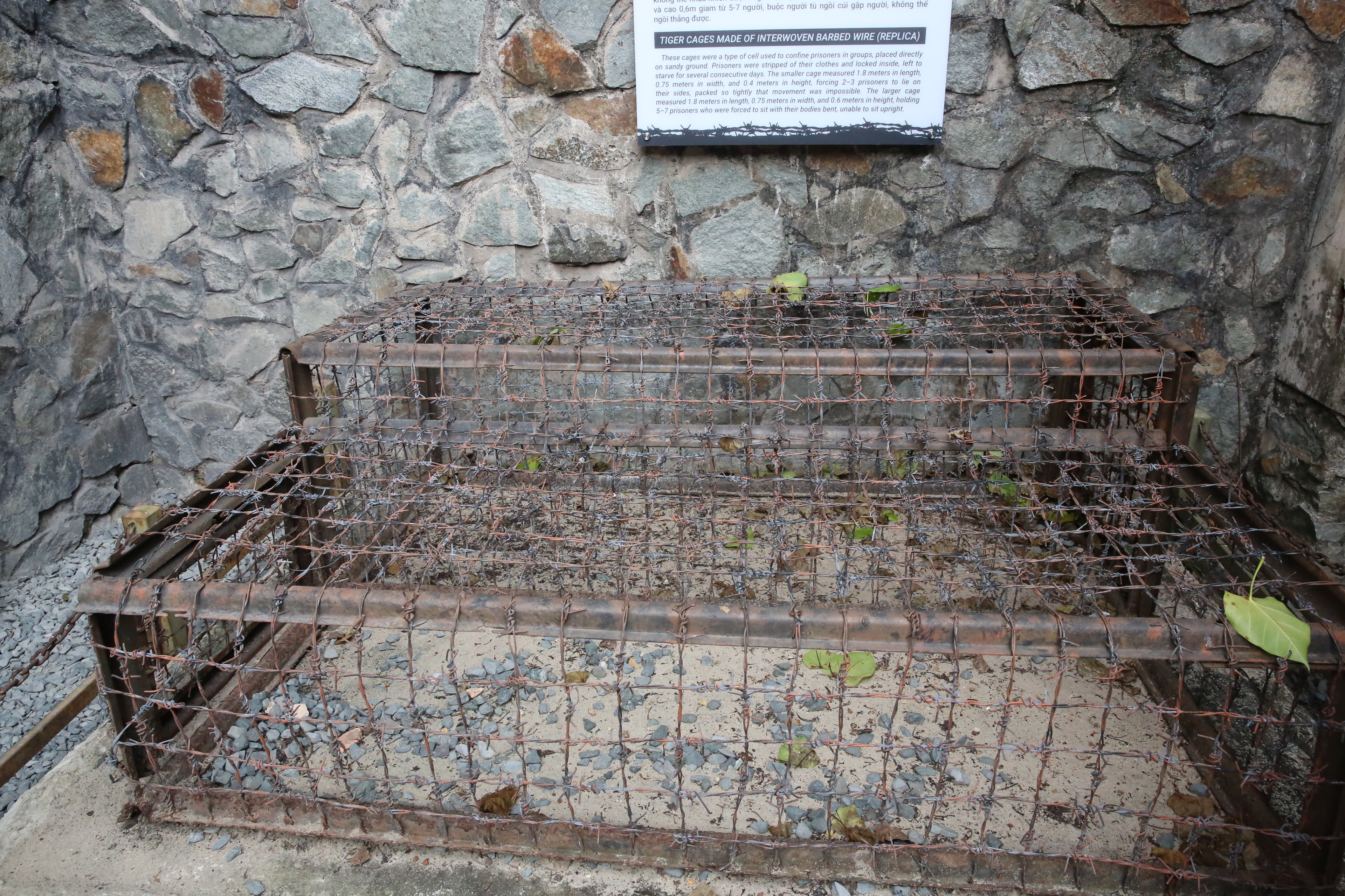 ホーチミン市での旅程に「元政治囚の歌と踊りのグループと交流」という企画があったので、弾圧を耐え抜いたゴツイ男の戦士たちのグループか、と思っていた。フランス統治時代から、体制に反対した人々の多くは、特にコンソン島の「虎の檻」と呼ばれた監獄、いや檻に入れられ、突かれたりする拷問を受けた。ホーチミン市の戦争証跡博物館にはそのレプリカが展示してあった。私がこんな中に入れられたらとても自分の信念など貫けないだろう。