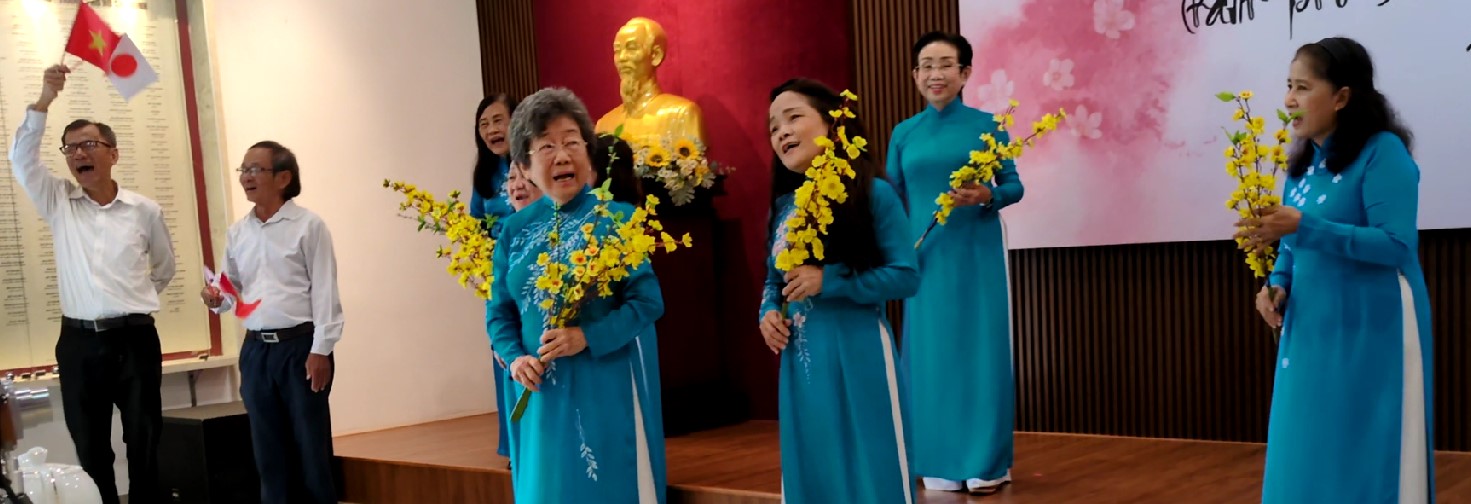 この後、田植え歌などがあり、最後にテトを寿ぎ、日本とベトナムの友好を願う(と私が思った)歌 が歌われた。