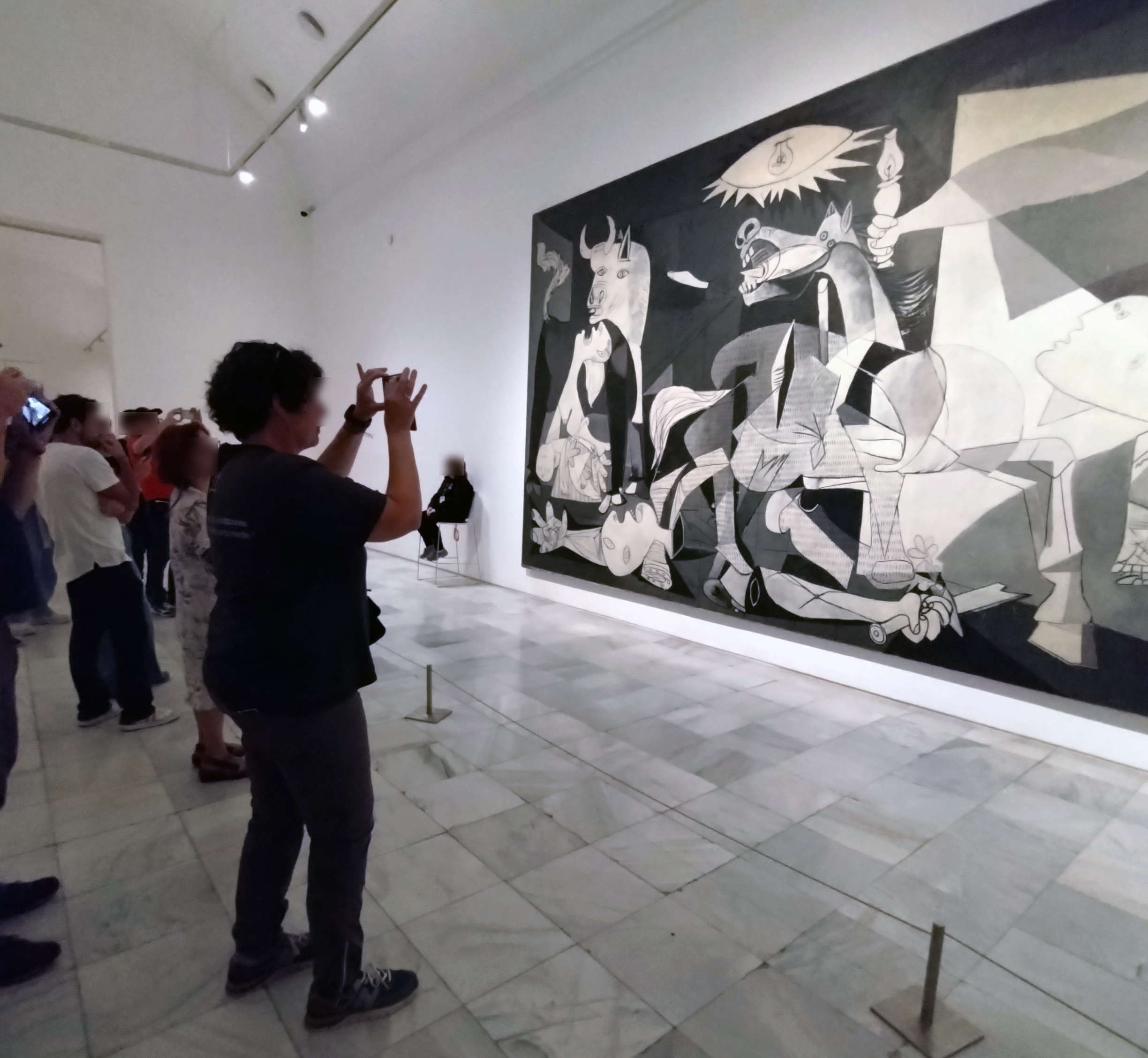 あまりに有名なピカソの「ゲルニカ」は、マドリッドのソフィア王妃芸術センター、という現代絵画を主として展示している美術館の2階にあり、人々でたいへん賑わっていた。スペインに着いて真っ先に行ったのがここだった。驚いたのは、撮影禁止、と聞いていたのだが、皆スマホで撮影していたことで、3人いた係員は全く注意、制止をしていなかった。私も「これは事実上の解禁かな?」と思って何枚も撮った。後で分ったのだが、実は2023年9月にすでに解禁されていたのだった。ネットによると、イギリスの有名なロック・ミュージシャン、俳優のミック・ジャガーの要望に対して撮影が許されたのを機に、「有名人だけ認めるのはおかしい」、という世論もあり、解禁となったとのこと。
