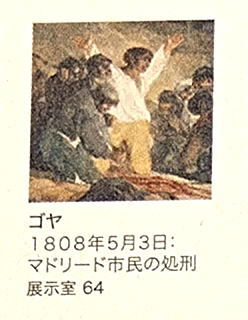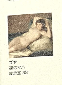 博物館でもらえる案内パンフレット(日本語版)で紹介されている、代表作品33枚の写真とそれぞれの展示室案内のうち、ベラスケスが1枚(この「ラス・メニーナス」に一番人だかりがしていた)、3枚がゴヤである。マハは裸と着衣のものが並べて展示されていたが意外に空いていた。