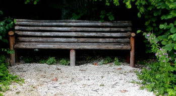 メスキルヒから、ハイデッガーが若かったころよく歩きながら思索をし哲学の道を志すにいたったという「野の道」が畑の中を通っている。右は彼がよく腰掛けた「道」の途中のベンチ。