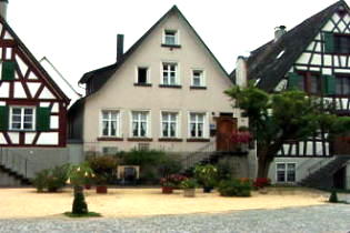 町の真ん中の広場に面して、ハイデッガーが幼少期を過ごした家がある(3つ並んだ家の真ん中の家)。