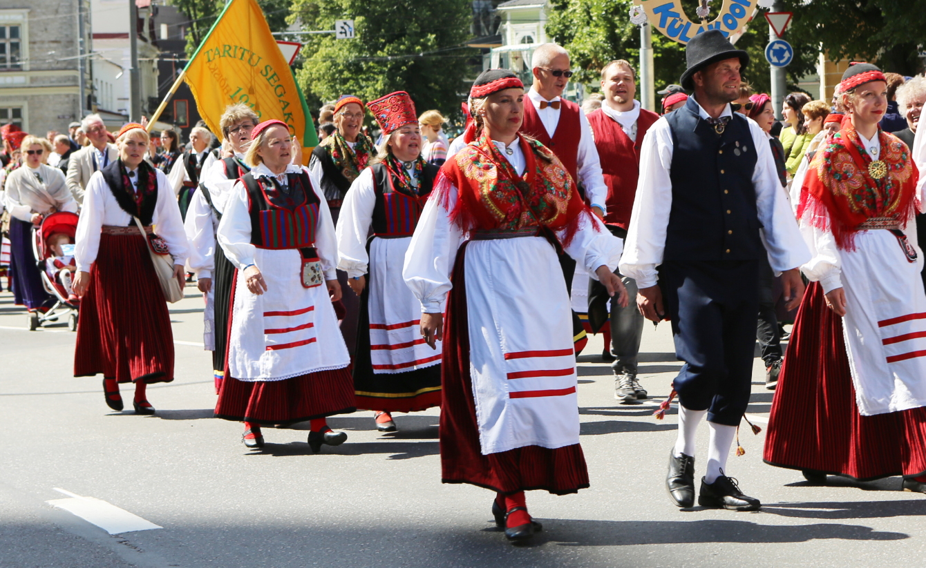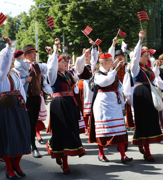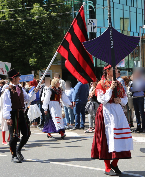 歌の祭典へ向かうパレードより。このパレードのプラカードよりKihelkonnaだとわかる。