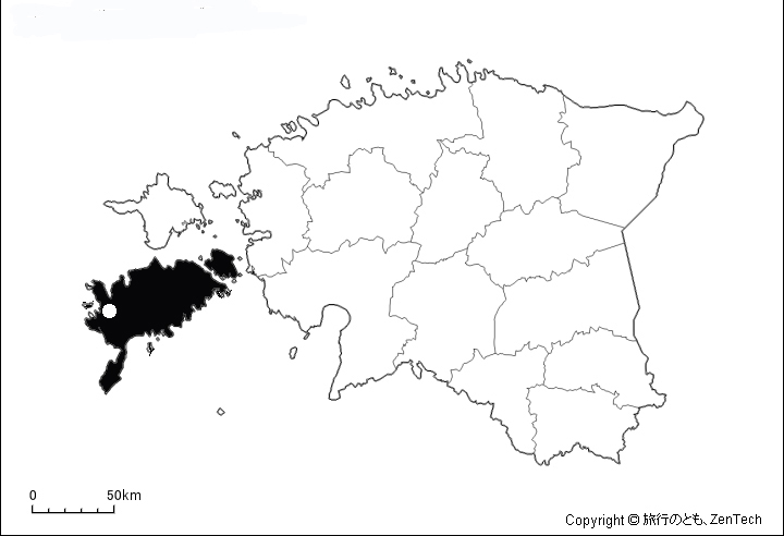 サーレマー島の西地域にある白○がKihelkonna。