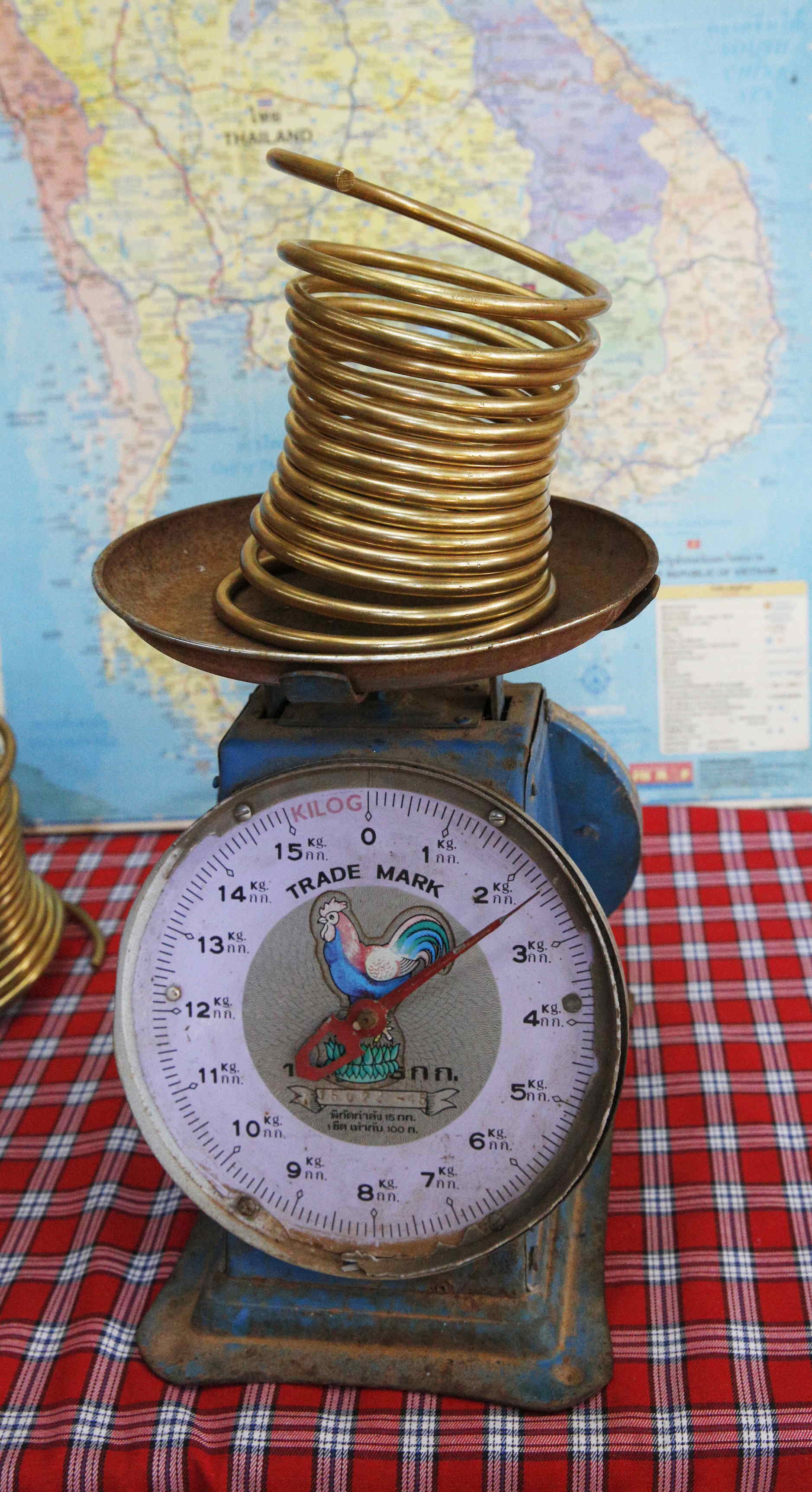そして、一番の「お目当て」の「首長族」、すなわちカレン族の一つカヤン族の「村」へ。男性は首輪は付けません。女性は5歳になったら、真鍮製の線をぐるぐる付け初め、一定の年齢になると、取り外し、さらに長く巻き付けていくのを30歳まで繰り返すとのこと。首が延びるのではなく、首輪の重みで肩の骨が下がっていくためだそうです。首輪を外すとやがては元に戻るとのこと。「首輪を外すと支えられないから死ぬ。」というのは誤りだそうです。首輪をする理由は、彼女たちの神話で先祖が虎に首をかみ殺されたので、守るため始めたからだとか、首が長いほど美人だという民族の美意識からとか、他部族の男に取られないようにして民族からの離反を防ぐためだったとかいろいろ言われていますが、真相ははっきりしていないらしいです。多くの女性たちが「観光用」とわりきって首輪をしています(Wikipedia「首長族」より)。私は「難民支援」と考えて、人形のお土産を買いました。お土産を買うと、サービスとして一緒に記念写真を撮れます。