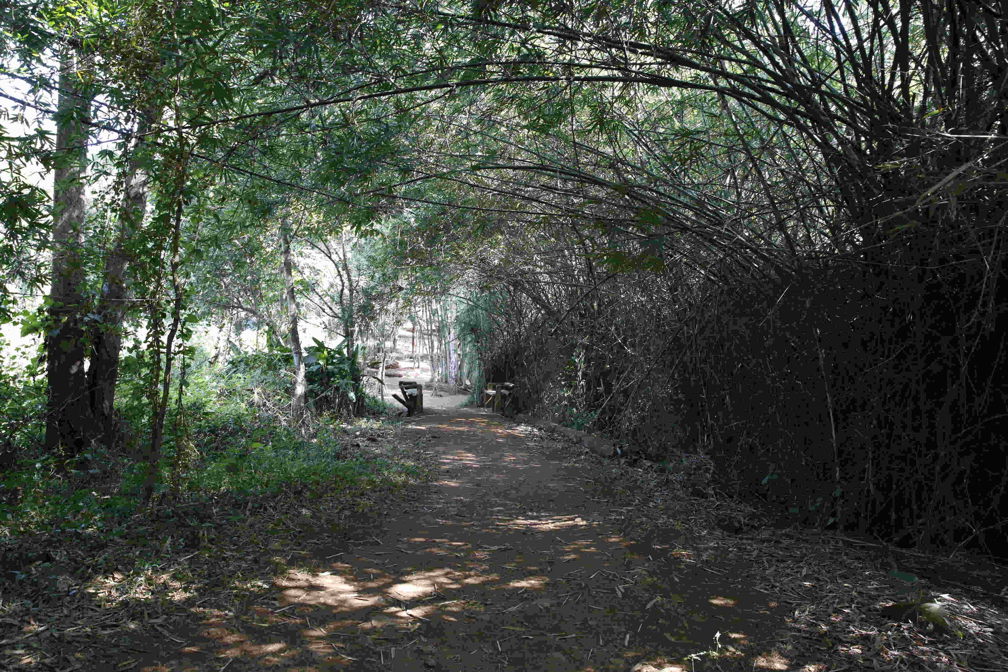 入口の「看板」と各民族がいる場所への道。民族ごとに一定の距離を取って別々に観光用「集落」を作っています。