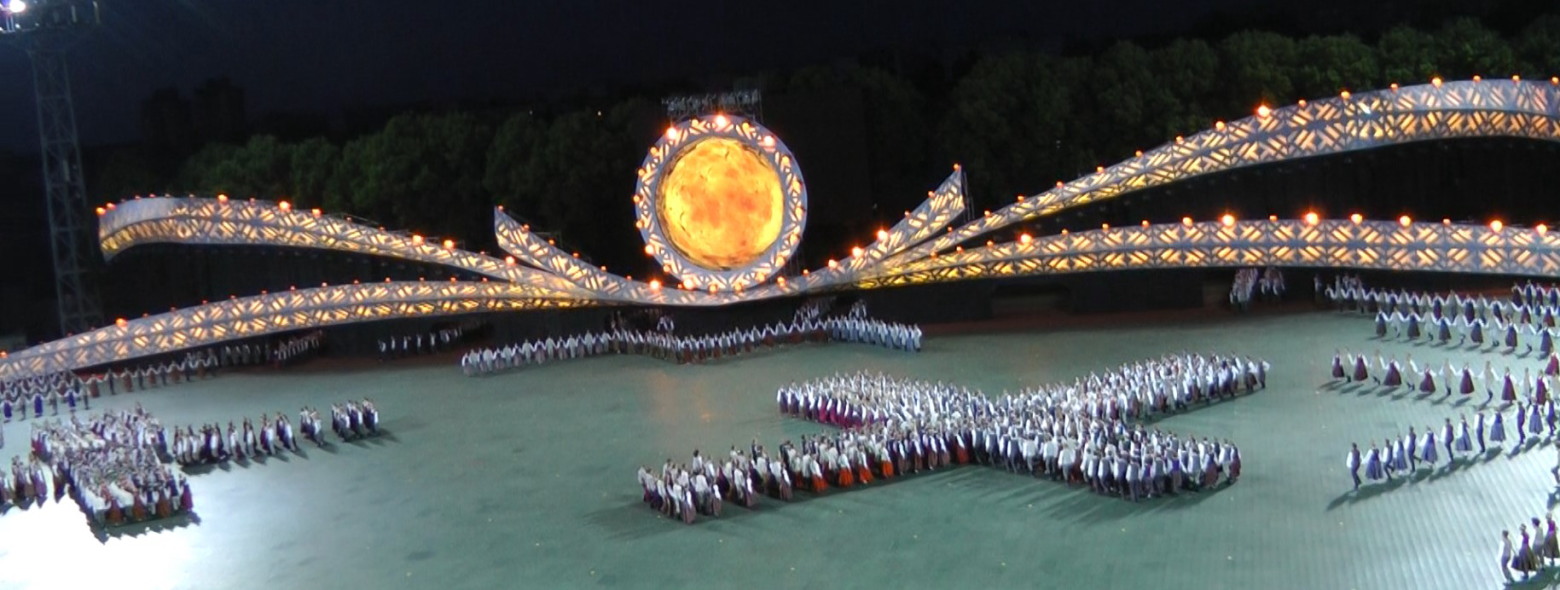 76組のシニアダンスグループが踊り、最後は下のような形を作って終わった。