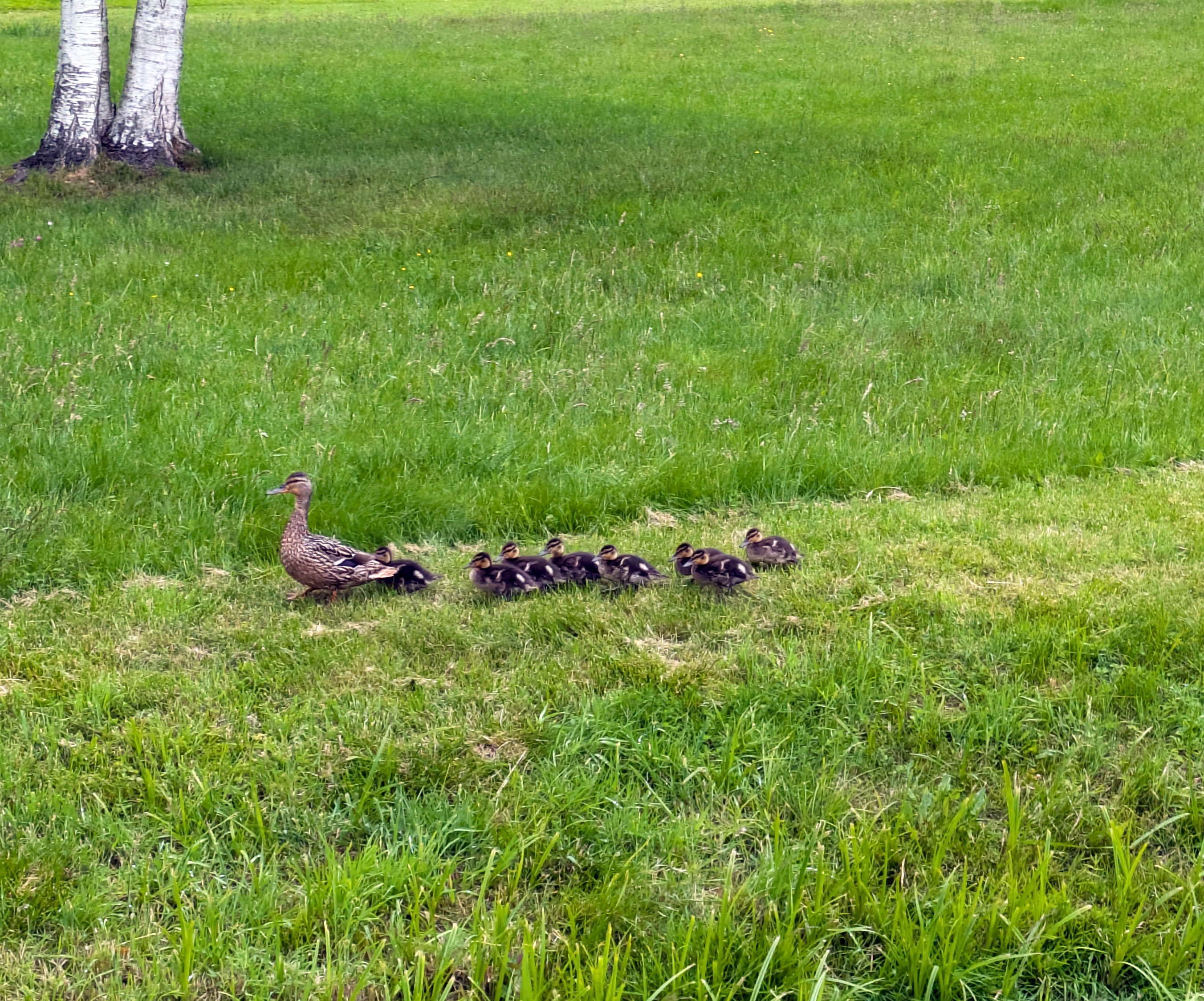 これはカルガモだ、と思ったら、バルト三国にカルガモは生息していないとのことで、嘴が黄色ではないのでマガモのようです。
