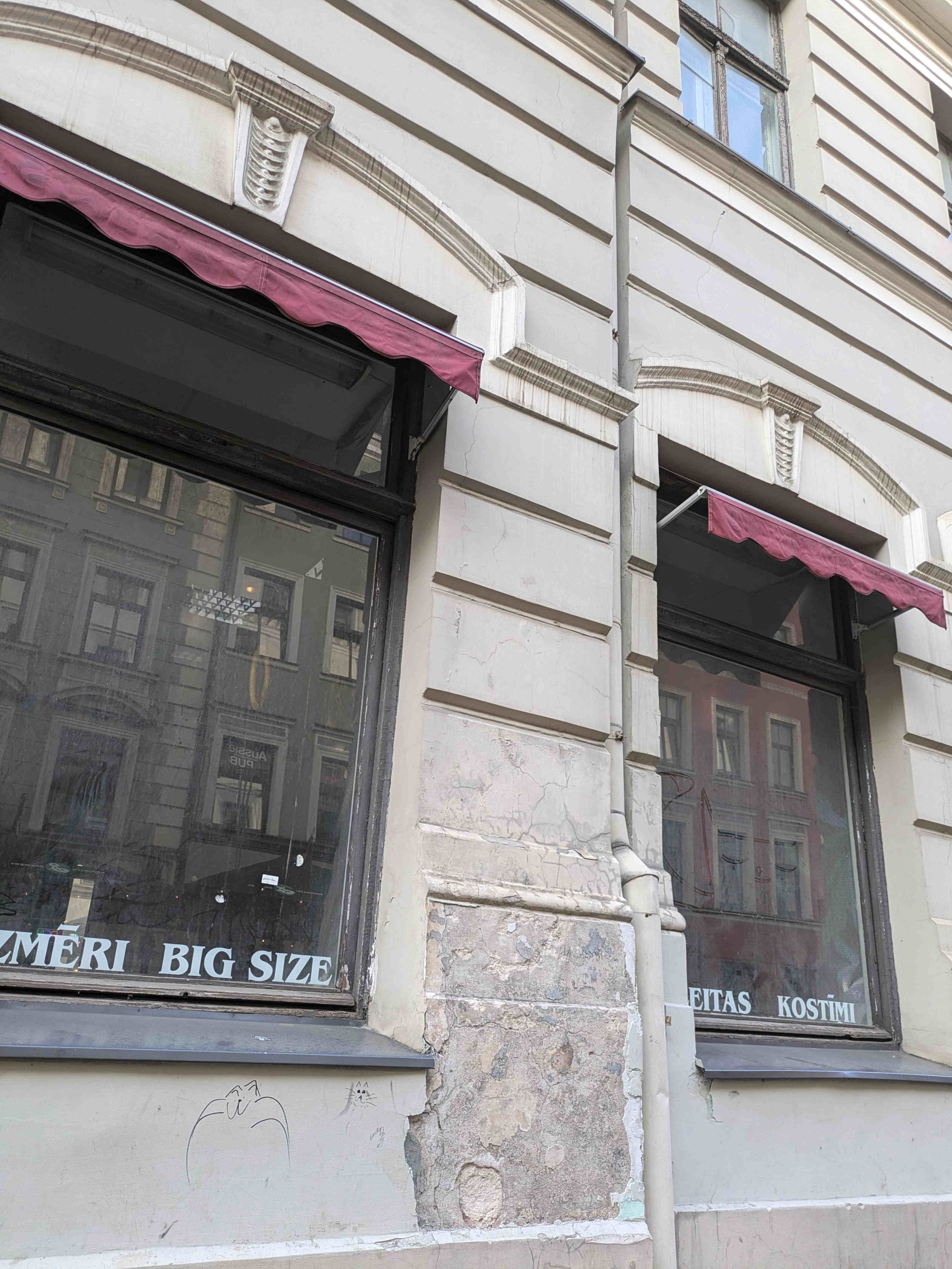 リガの街中をよく見ると、この二つの色の組合せが様々な形で使われていました。