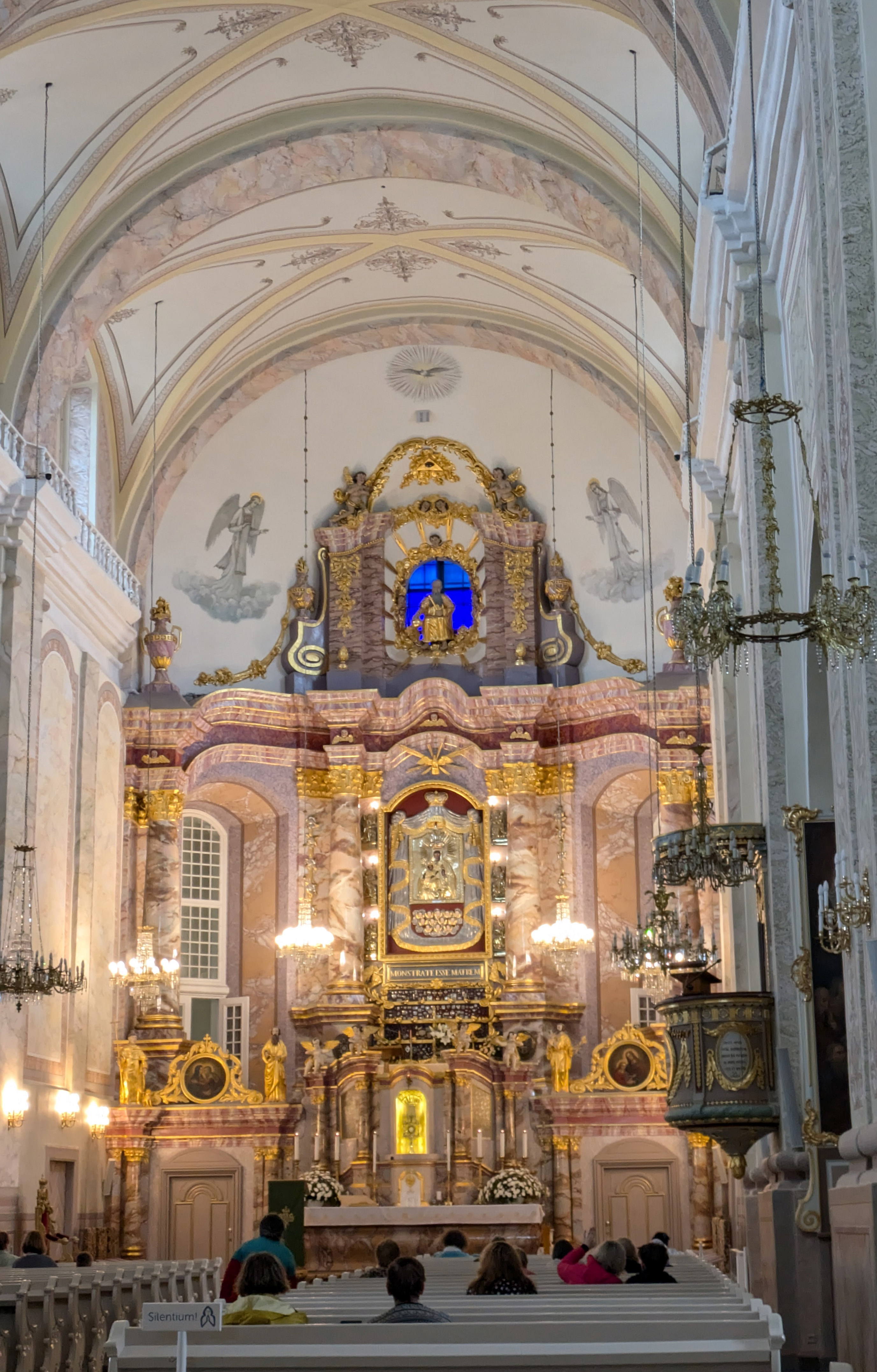 毎年8月のある日に、多数のカトリック信者が終結するAglonaアグロナ大聖堂と中の祭壇