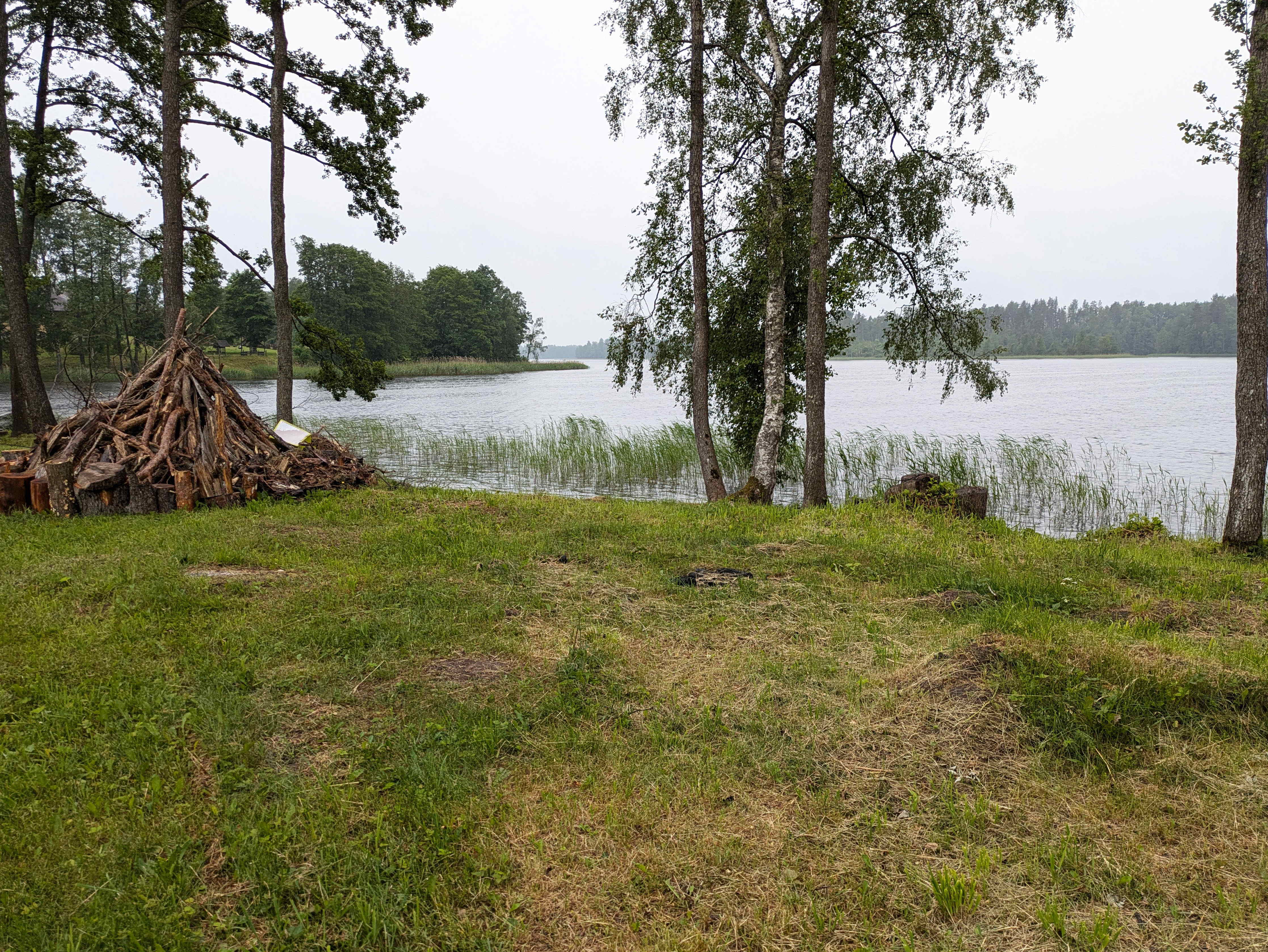 ビデオ撮影をしたパカルニス湖。実際に踊った場所に湖岸の風景が似ていたが、雨が降りしきっていたためこれ以上別のところに移動して比べての確定をすることができなかった。右は踊りの祭典より。