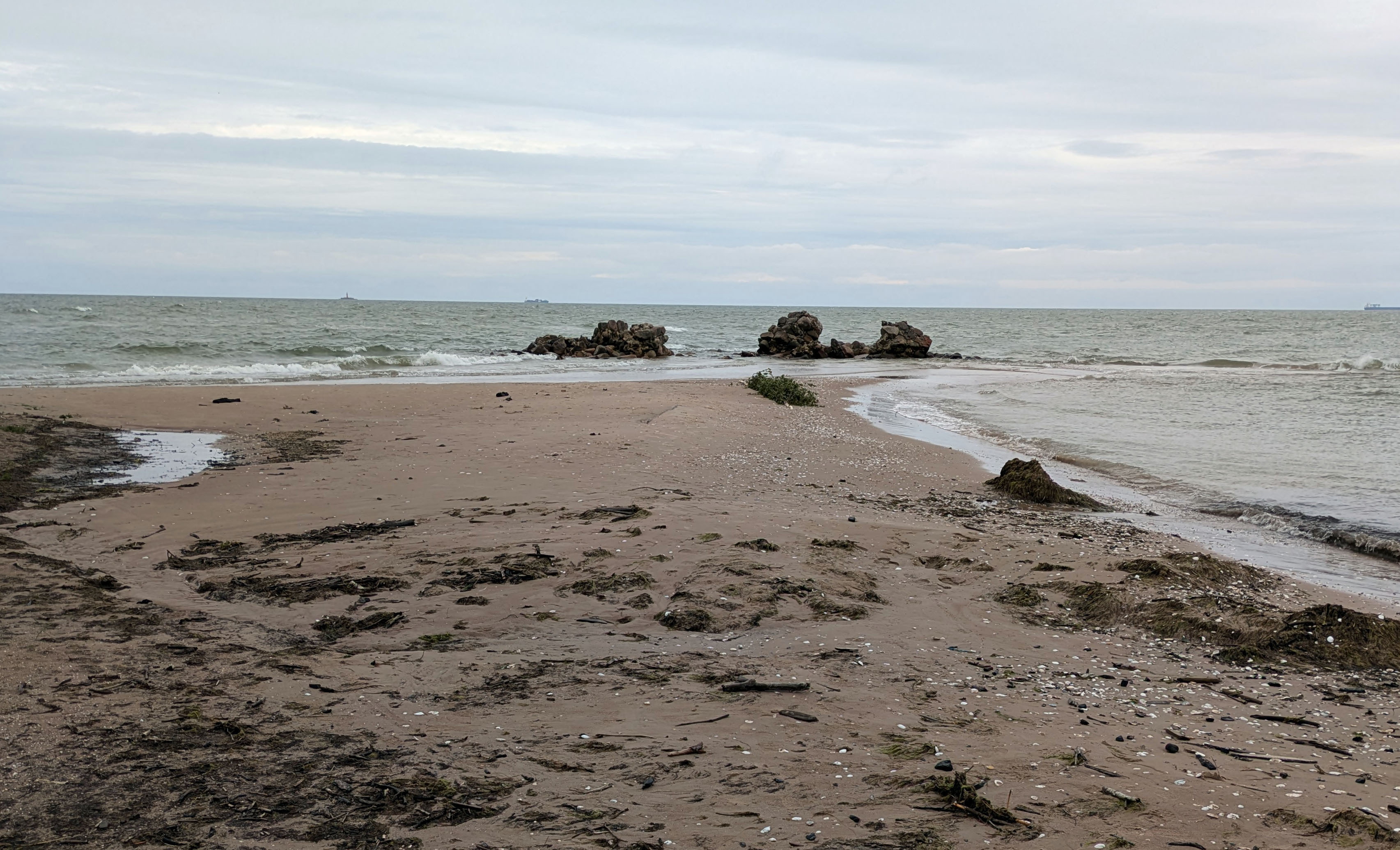 クルゼメ北西端のKolka岬。西からのバルト海の波と、北東からのリーガ湾からの波が、別々の角度で打ちつける