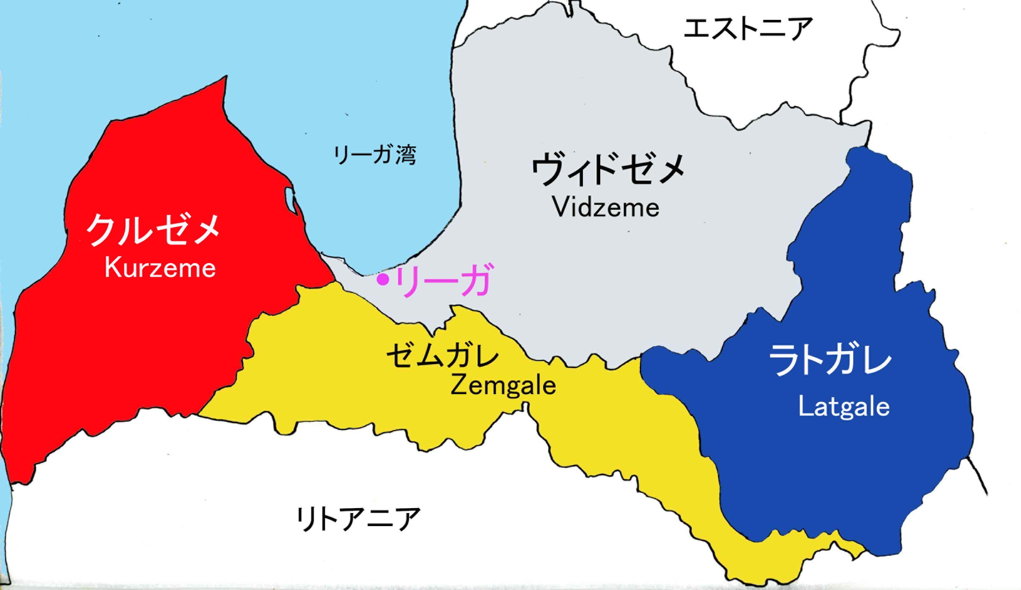 ラトビア共和国憲法第3条は「ラトビア国家の領土は、国際協定で定められた境界内において、Vidzeme、Latgale、Kurzeme、Zemgaleからなる。」と規定している(Wikipedia「Constitution of Latvia」の翻訳より)。そのラトビア語地名はそれぞれヴィドゼメ、ラトガレ、クルゼメ、ゼムガレと日本語で表記される。この4つは地方行政単位ではなく、かつてそれそれの名に足跡を刻んだ部族名に由来したり、共通の歴史をたどった地域、ラトビア語方言の分布とほぼ一致する、ラトヴィア語で「Latvijas kultūrvēsturiskie novadi」(「ラトビアの文化歴史的地域」)と呼んでいるものである。地図で示すと次のようである。それぞれの地域の色は、私が勝手に塗ったもので、特にそれぞれ決まっているものではない。ゼムガレの南東部をさらに分けてSēlija セリアとよぶこともある。