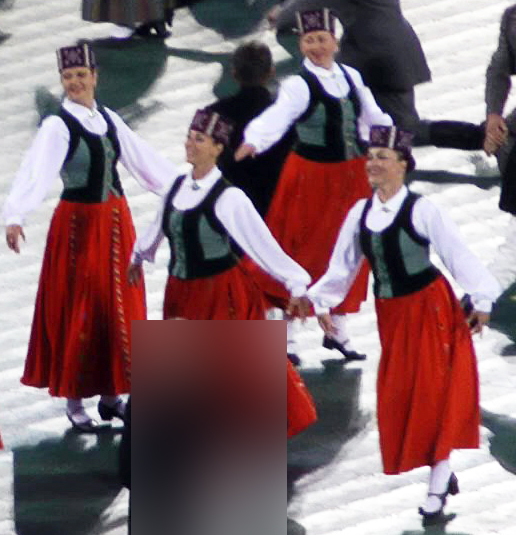 ゼムガレは、かつてこの地にいたゼムガレ人にその名を因む。zem「下」+gale「端」ということで、「低地の端の地」という意味とのこと。その地形の多くが平坦で肥沃な土地であることを示している。その肥沃な豊かさは、この地域の民族衣装にも反映されており、女性のスカートのストライプ模様に、豊穣を示す菱形や麦の穂、畑などを抽象化した模様がデザインされているという。歴史的には、クルゼメとともにクールラント公国を形成し、その首都のJelgavaイェルガヴァをもっていた。「SKAISTA MANA TĒVU ZEME」のビデオでは、どこかの広い畑と思われるところでこの地の民族衣装を着て踊っていた。