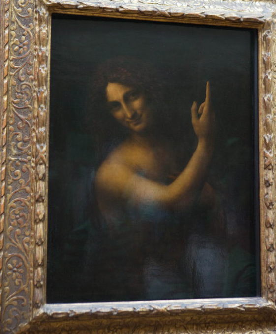 イエスに洗礼を施したヨハネは今まで男性的に描かれてきた。しかし、この絵では顔つき、身体つきは女性的で、「両性を具有する聖なる存在へ近づきたい。という渇望があったのではないだろうか。」(池上英洋監修『ダ・ヴィンチを知りたい』p76)