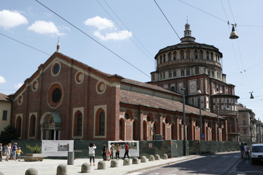 サンタ・マリア・デッレ・グラーツィエ修道院。第二次大戦中にアメリカ軍の爆撃で全壊。絵画の描かれていた壁だけが奇跡的に被害を免れた。