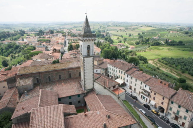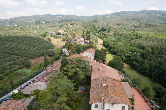 ヴィンチ村から南(左の写真)と北(右の写真)を望む。レオナルドの誕生地はやや北北東の丘。オリーブの畑が続く。
