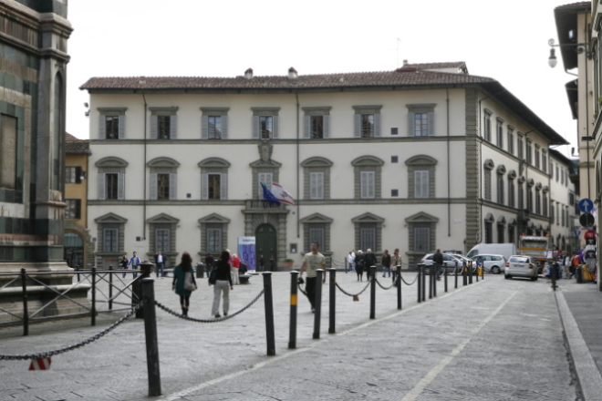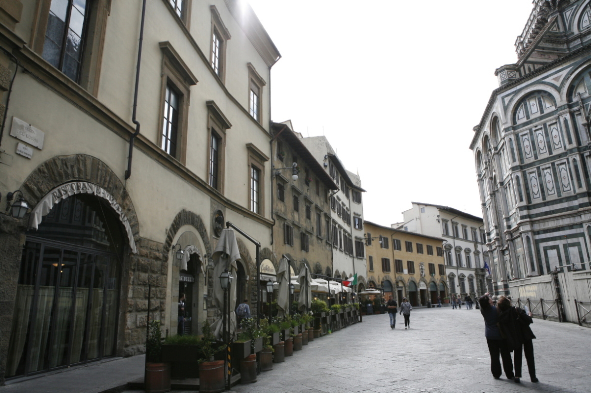 ヴェロッキオの工房があったとされる二つの候補のある大聖堂の裏の通り