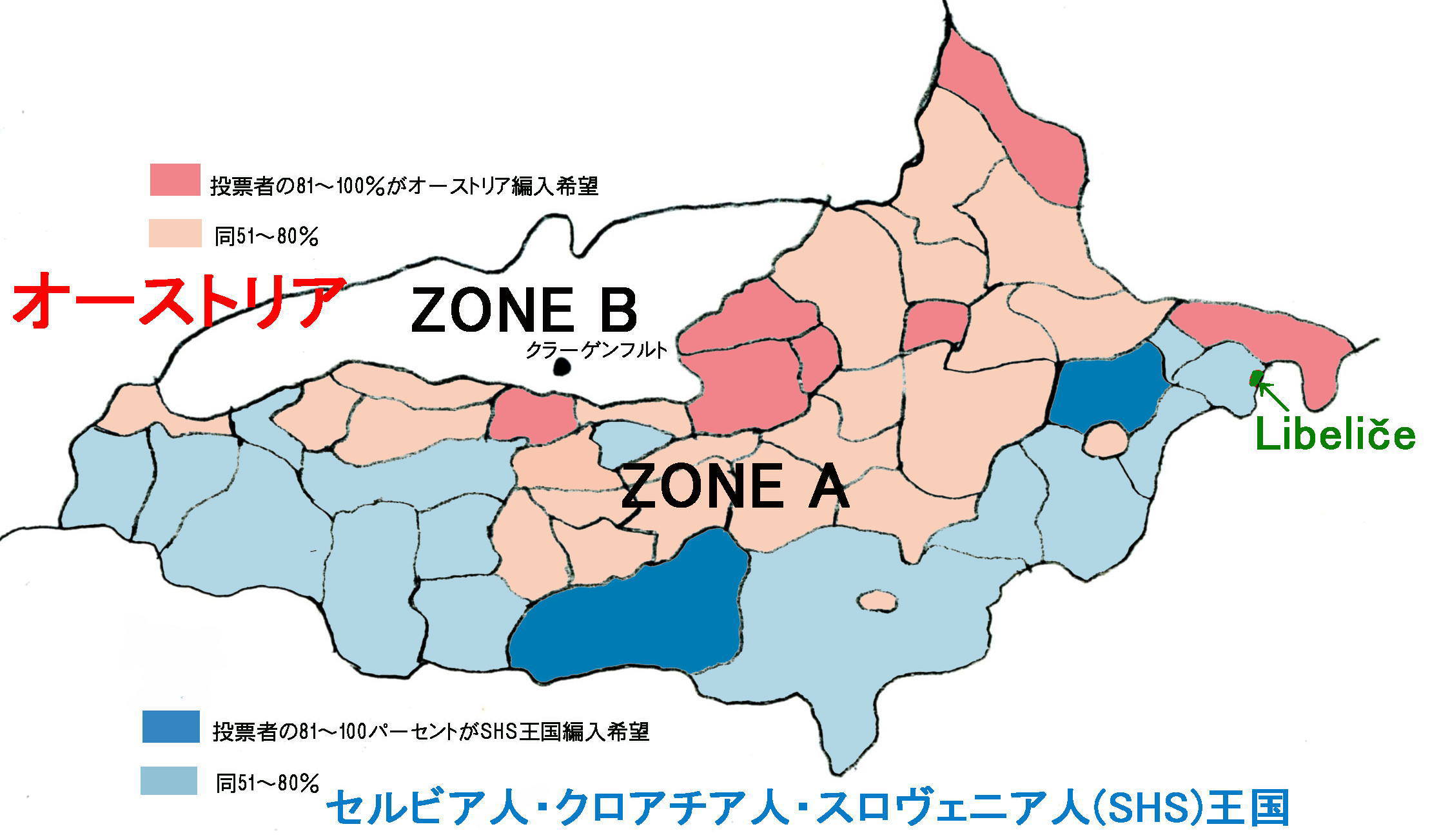 そこで、当時「民族自決」の理念が重視されていたこともあり、条約は、この地域の南部をAゾーン、北部をBゾーンと区分して、Bゾーンはドイツ語話者が圧倒的に多かったのでオーストリア領とし、Aゾーンは最終的に現地の住民投票による多数決で全体の帰属を決すると決めたのであった。