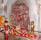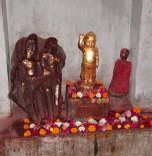 真ん中は4世紀頃のグプタ朝のゴータマ誕生のモチーフのレリーフだが、異教徒に破壊された。左はそれを新しく再現したもの。右は、日本から送られた「釈尊ご誕生像」。