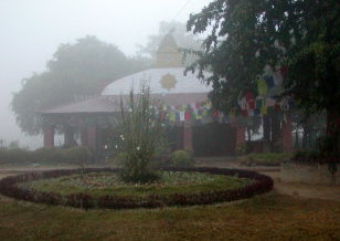 私の行った朝のルンビニは深い霧の中にあった。紀元前463年(他説に前566年、または前623年)、この地域の釈迦族の王、スッドダーナと王妃マヤ夫人の間にゴータマ・シッダルタがここで生まれた、という。マヤ夫人は習慣に沿って、実家に帰って産むつもりが、ここで産気づいてお産したとのこと。物語としては、マヤ夫人は6牙の白象が胎内に入る夢を見て妊娠し、ルンビニでは、沙羅双樹の木に手をかけたら右脇の下からゴータマが生まれたという。生まれたばかりのゴータマは、七歩歩み、右手を上に、左手を下に「天上天下、唯我独尊」と指で指し宣言したという。