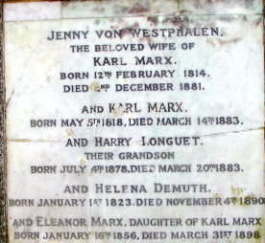 墓にはマルクスの妻イェニー、マルクス、孫のハリー、ずっと家政婦をしたヘレーナ・デムート、娘エレーナが葬られている。墓には「万国の労働者団結せよ。」と「哲学者たちは世界をただ解釈してきたにすぎない。大切なことはそれを変革することだ。」というマルクスの言葉が刻まれている。