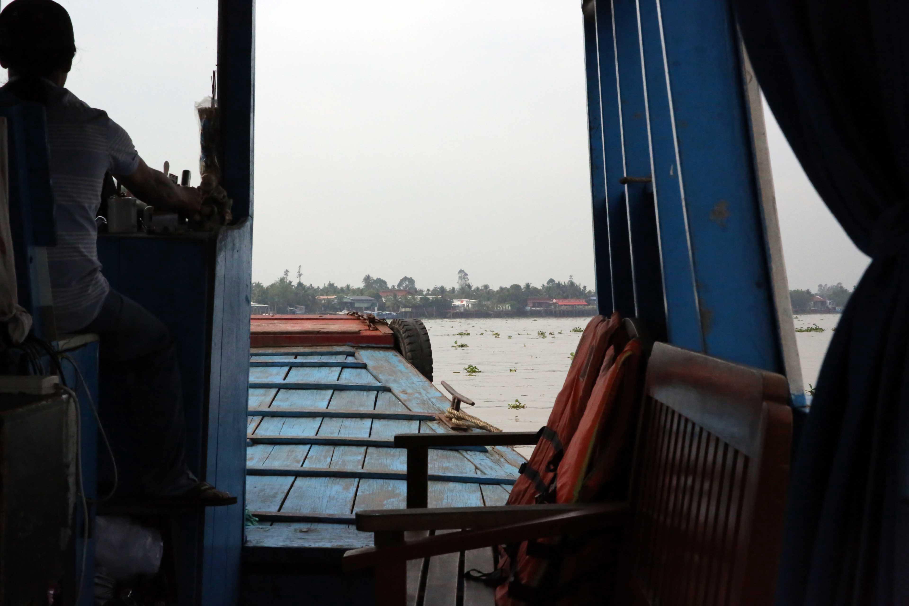 ミトのモーターボート乗り場(右)と横断したメコン川(左)