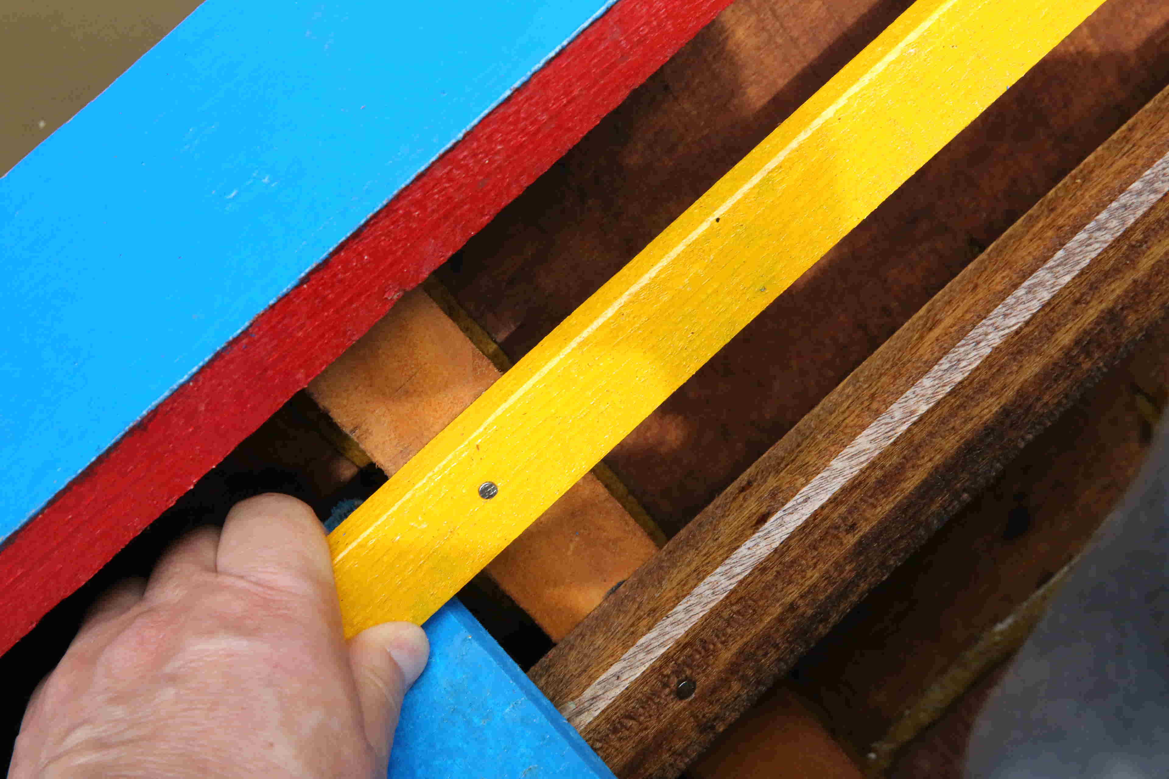 (左)ボート乗り場 (右)青い部分がボートの縁。黄色が握っているよう言われた手すり