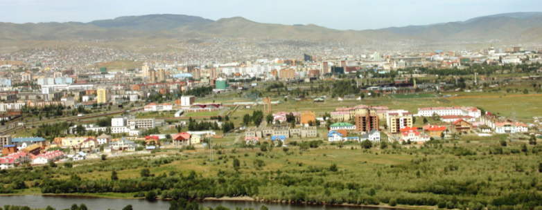 四つの山に囲まれた、トーラ川のほとりの盆地にウランバートル市がある。