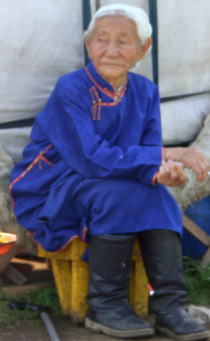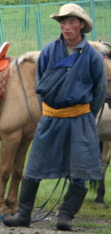 たまに町中で年配の人が着ているのを見た。遊牧民もお年寄りの一部しか普段は着ていない。