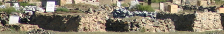 モンゴル人のお墓。基本的に土葬。簡単な盛り土だけのものもある。 カザフ人のお墓。土葬墓だが直方体の盛り土をする。